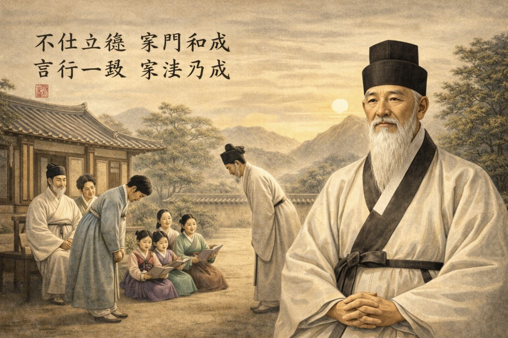 말과 행실이 하나 되어 가법을 드리우니, 맑은 본이 길이 후손을 깨우친다