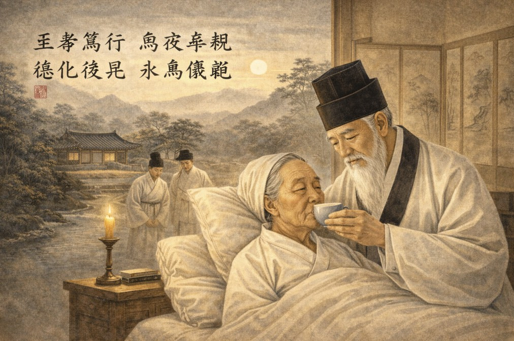 지극한 효 몸소 행해 밤낮으로 섬기시니