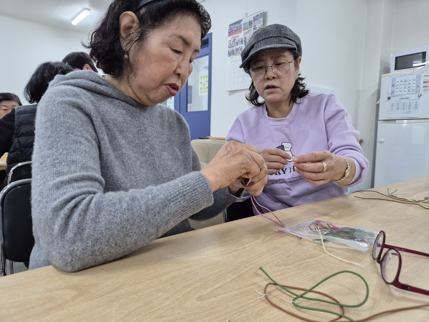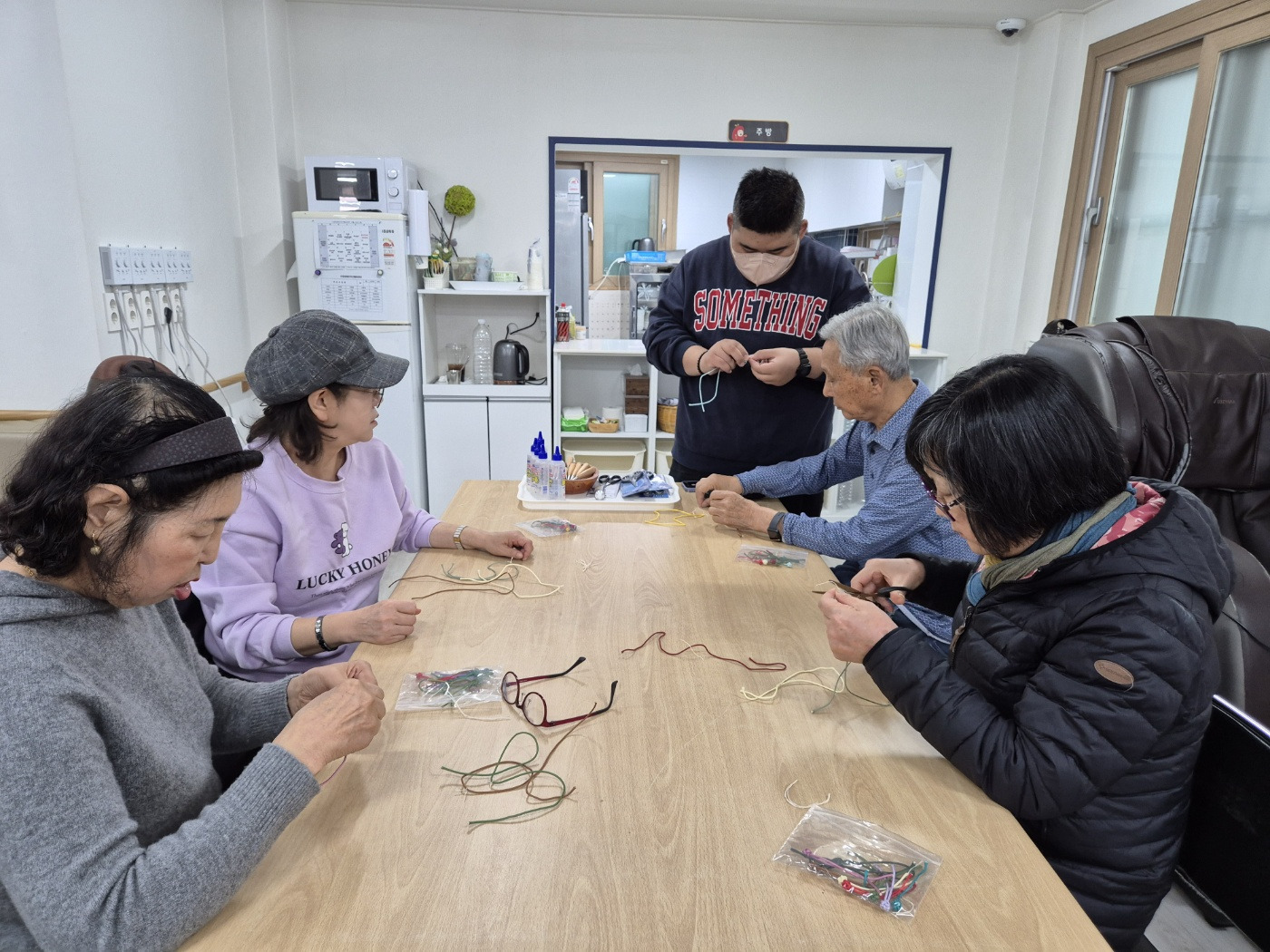 그래서 오늘은 문화활동으로 매듭공예 진행했답니다😁😁😁