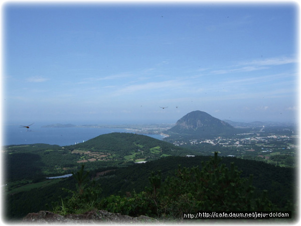 군산의 정상모습과 바다전망 멀리 서귀포의 밤섬과 중문단지