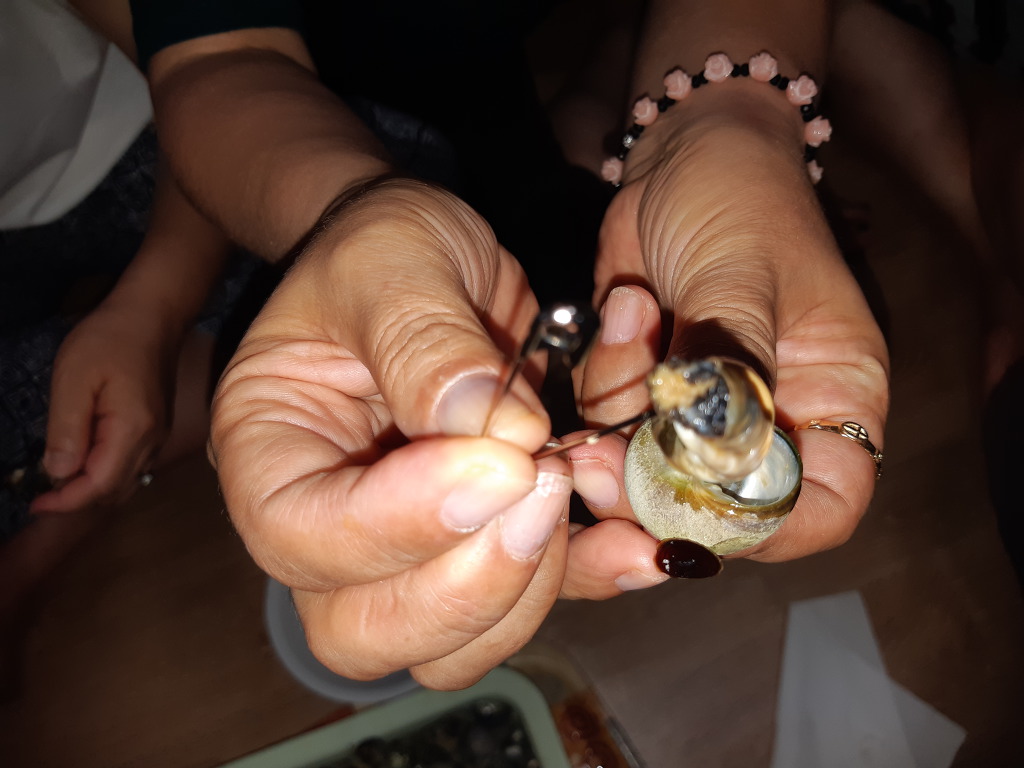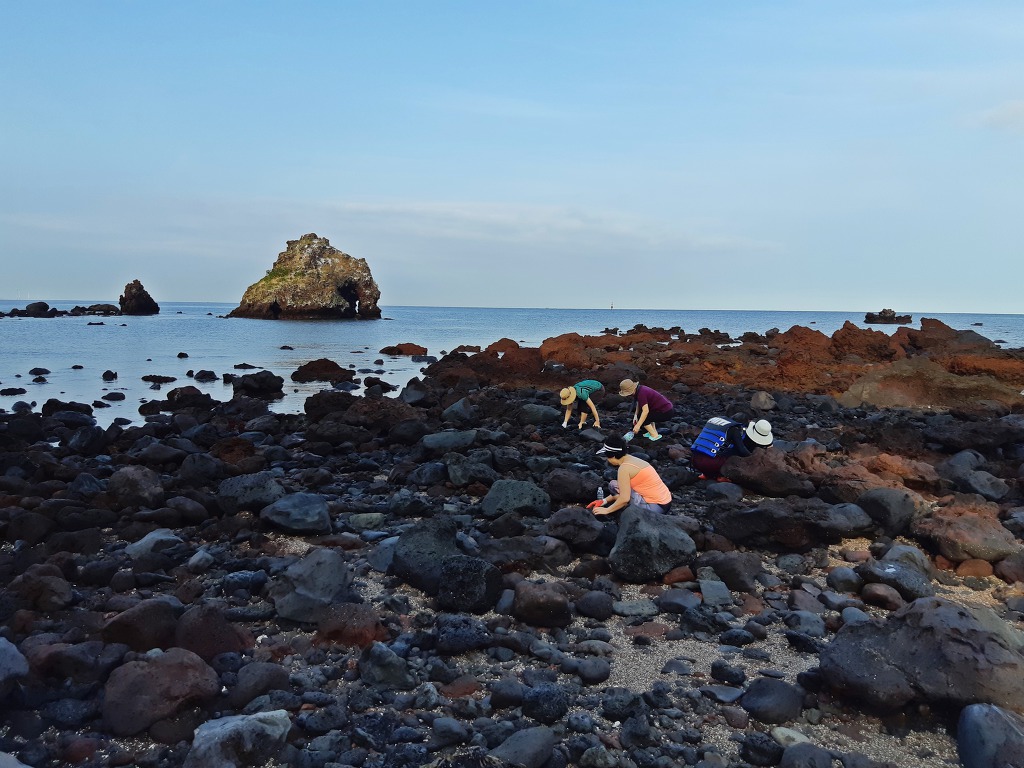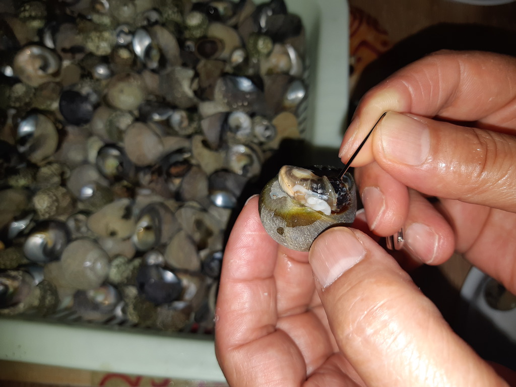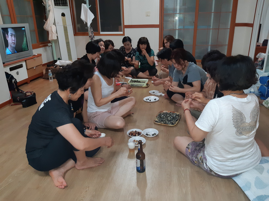 보말을 까먹느라 모두들 심각한 표정들...