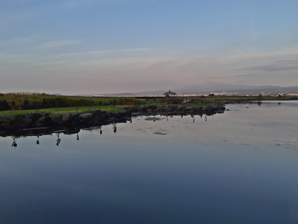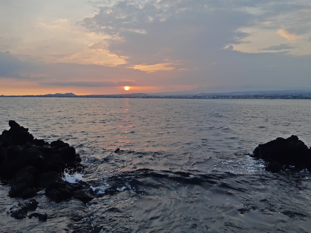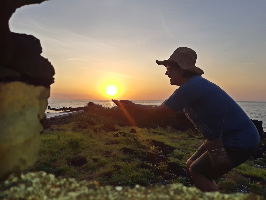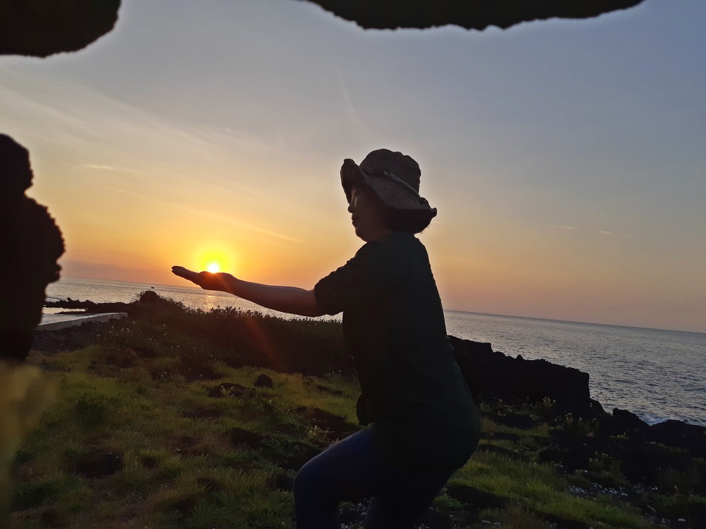 한라산이 흐려 아쉽긴했지만 섬 속의 섬에서 바라보는 떠오르는 태양을 보며