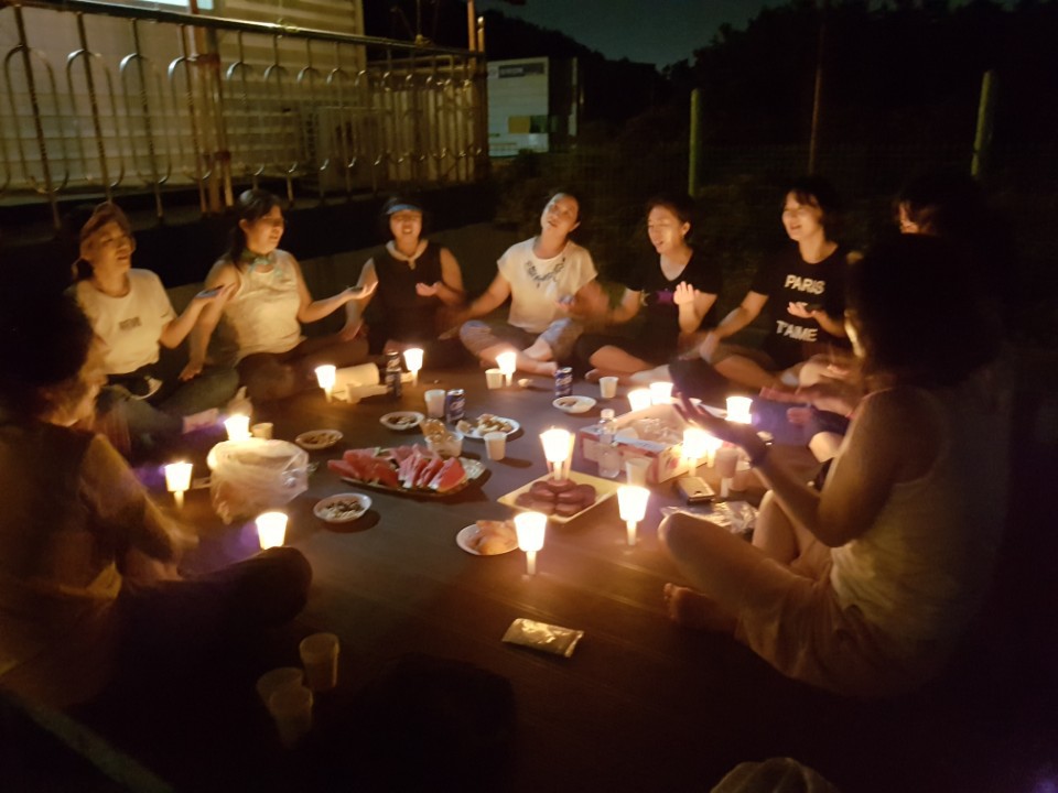아쉬운 마음도 잠시 모닥불 대신에 촛불을 켜놓고