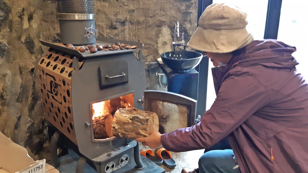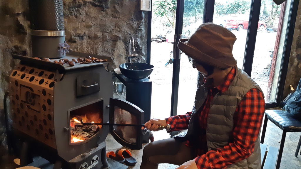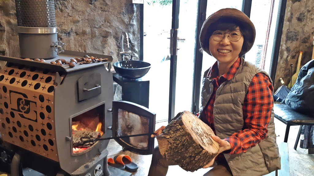 장작불에 세련된 창고 안은 온기로 가득 찼고