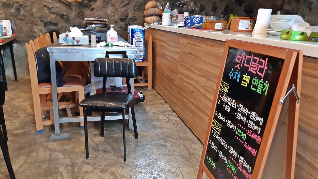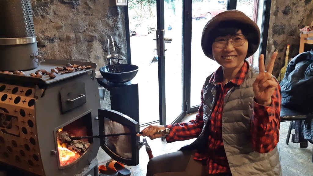 비 날씨로 추위가 느껴지자 걷기를 포기하고 정선이가 운영하는