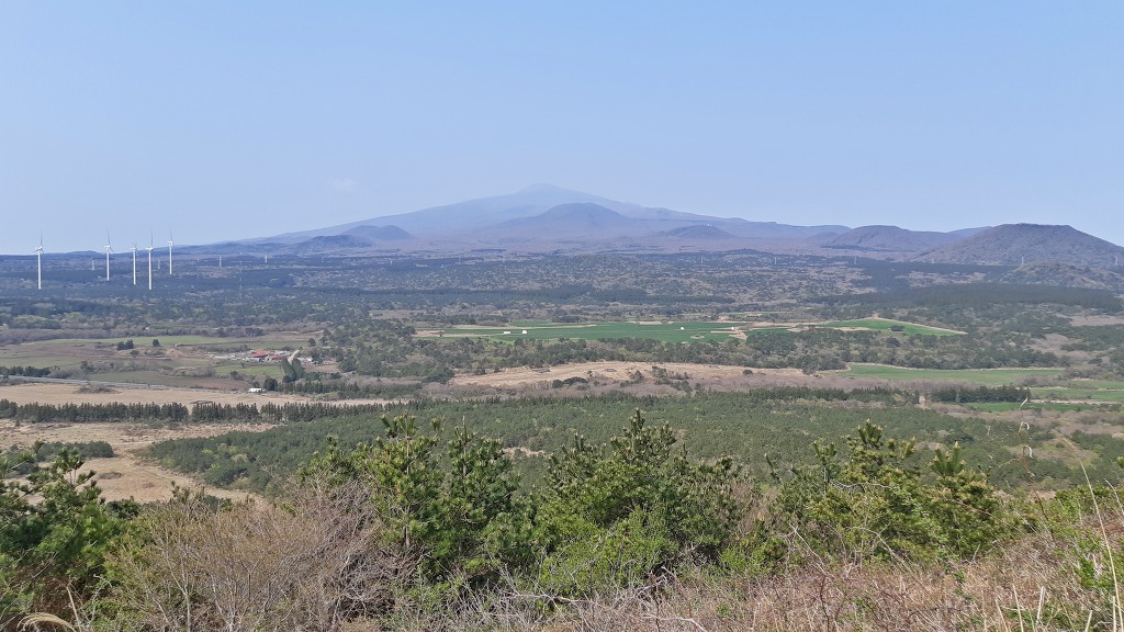 정상에 서면 멀리 한라산을 배경으로
