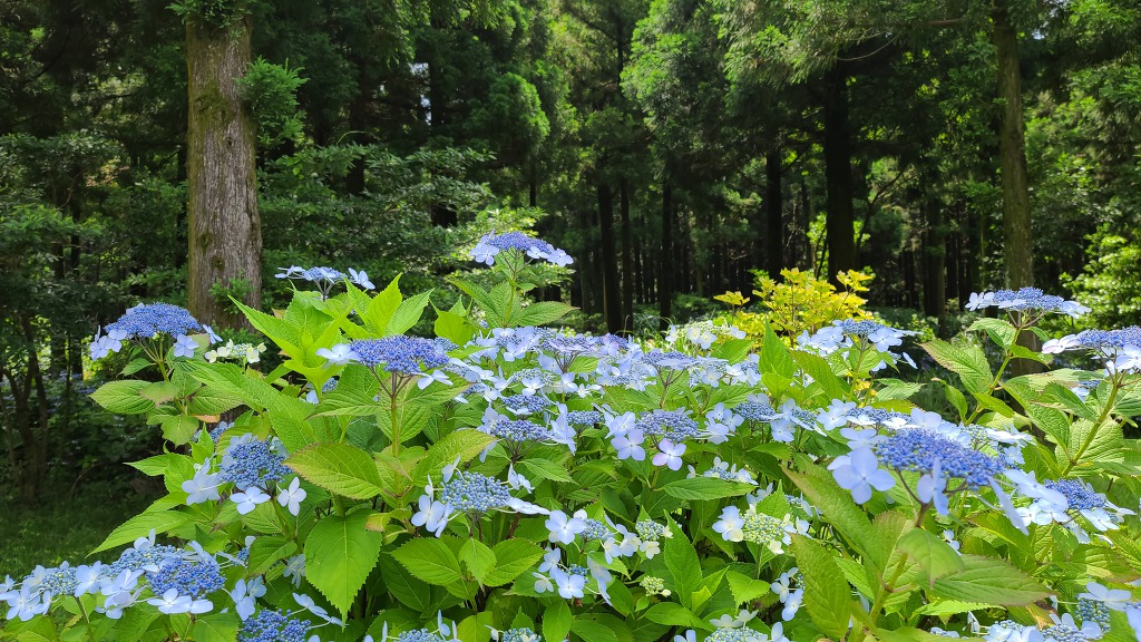 삼나무와 소나무가 주종을 이루고 낙엽수림 등 자연림이 울창한 숲을 이루고 있다.
