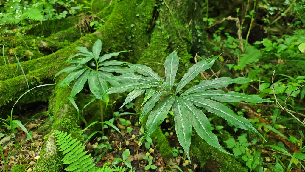 그늘진 숲 속에서 자라는 '무늬천남성'