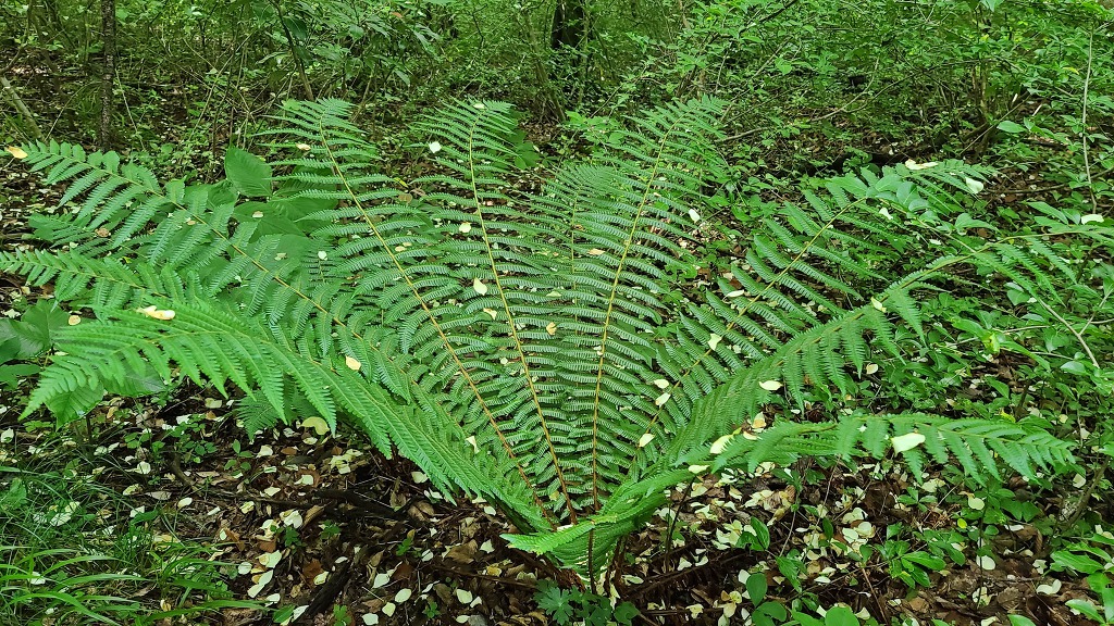 생명을 다한 듯 헛꽃은 등반로에도, 나무 위에도, 고사리 위에도 떨어지고