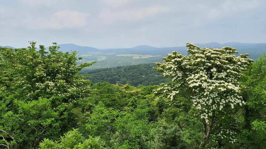 정상의 전망대에 오르면 한라산, 물찻오름 등 주변의 오름군과