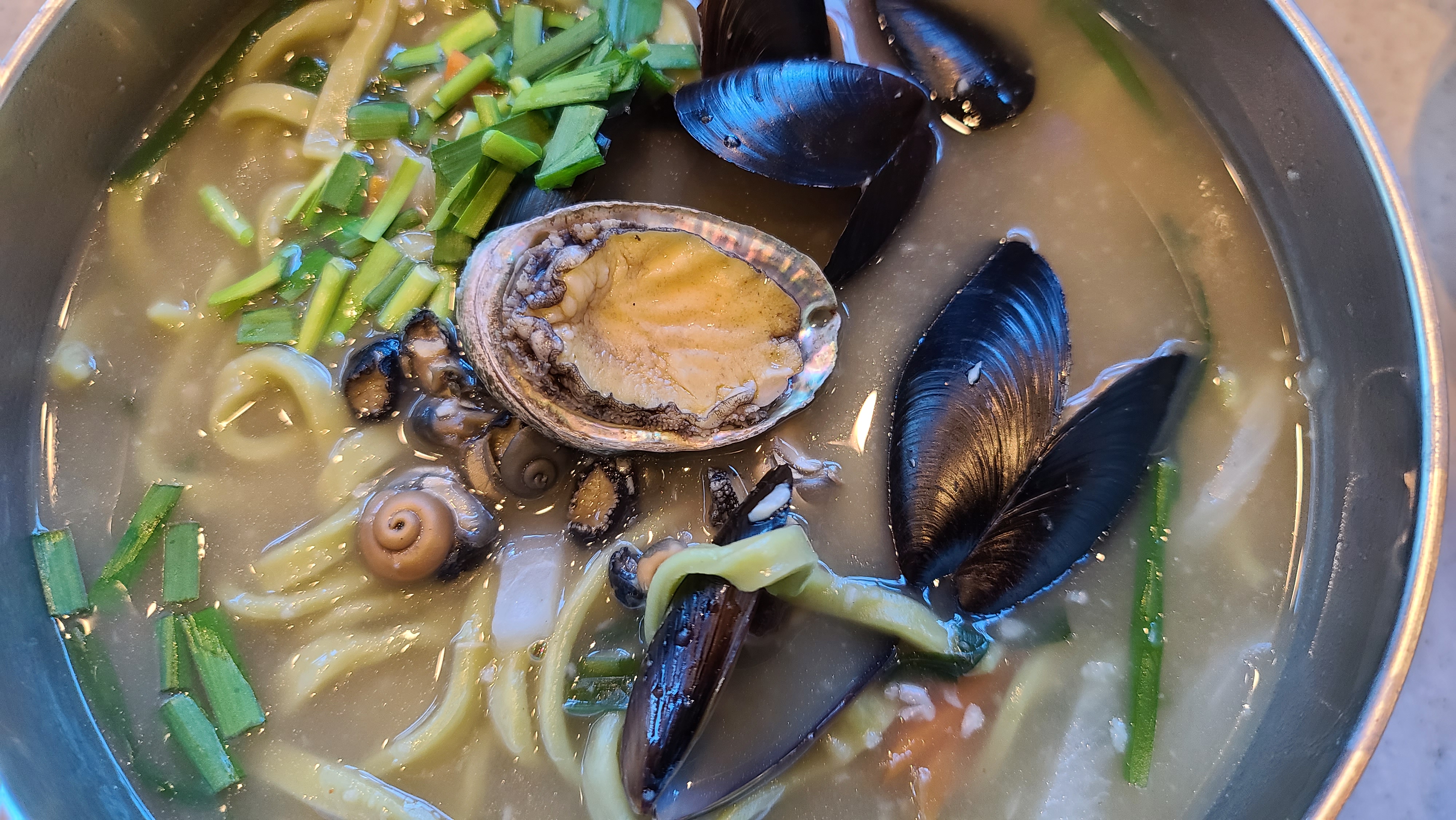 점심은 맛깔스런 보말전복칼국수로~