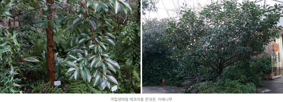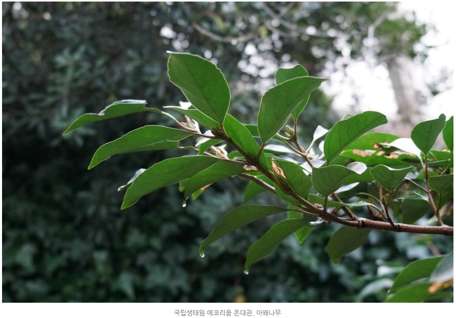 국림생태원 온대관은 아왜나무의 자생지와 유사한 환경을 제공하고 있습니다. 온대관을 방문하면 건강하게 자라난 아왜나무를 만나 볼 수 있어요. 지금은 겨울이라 하얀 꽃이나, 붉은 열매를 만나볼 수는 없어 약간 아쉽지만, 내년 여름과 가을에 다시 볼 수 있으니 그때쯤 방문해보는 것도 좋겠죠.