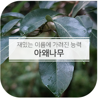 인터넷을 돌아다니는 유머용 사진, 일명 '짤방'들이 참 많습니다. 그 중에서도 독특한 이름을 가진 식물 사진도 짤방이 되어 활용되고 있는데요. 우리나라 사람들이 좋아하는 재밌는 이름을 가진 나무, '아왜나무'에 대해서도 인터넷에서 한 번 본 적이 있을 거라 생각됩니다. 이름이 재밌는 건 알았지만, 어떤 나무인지는 자세히 몰랐던 분들을 위애 오늘은 '아왜나무'에 대해 소개해보려고 해요.