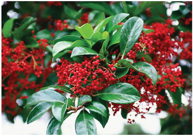 가을에 들어서면서 꽃이 핀 자리엔 콩알 굵기만 한 열매가 익는다. 짙푸른 녹색 잎을 바탕으로 수천 수만 개의 붉은 열매가 나무 전체에 달려 있는 모습은 장관을 이룬다. 그 모습이 마치 붉은 산호를 닮았다고 하여 한자 이름은 산호수다.