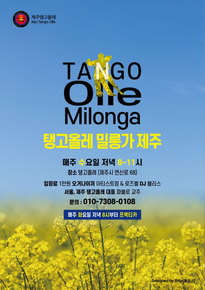 제주 지역 탱고 밀롱가 많이 활성화 되고 있어서 탱고에 관심도가 무척 높아졌습니다.