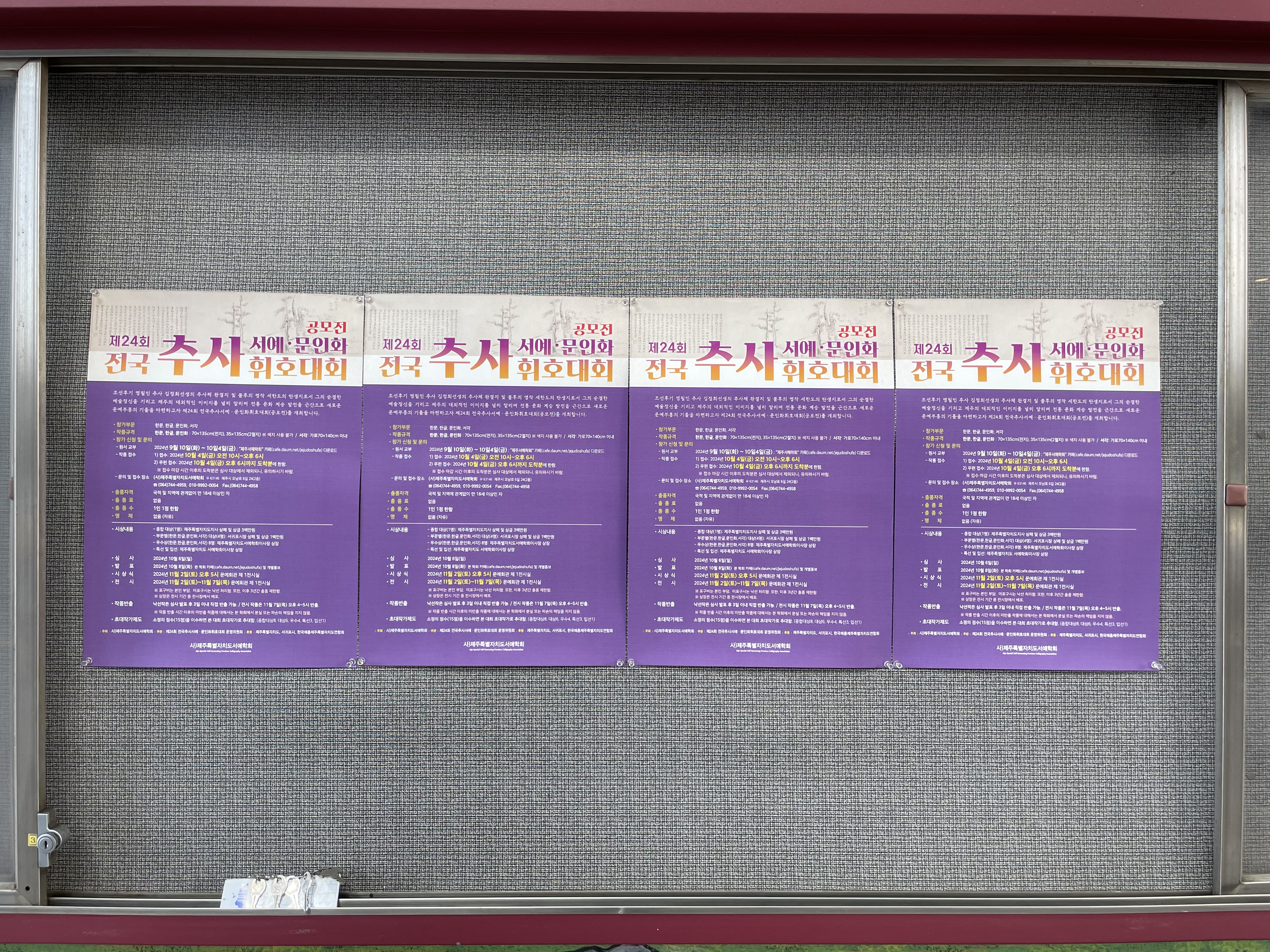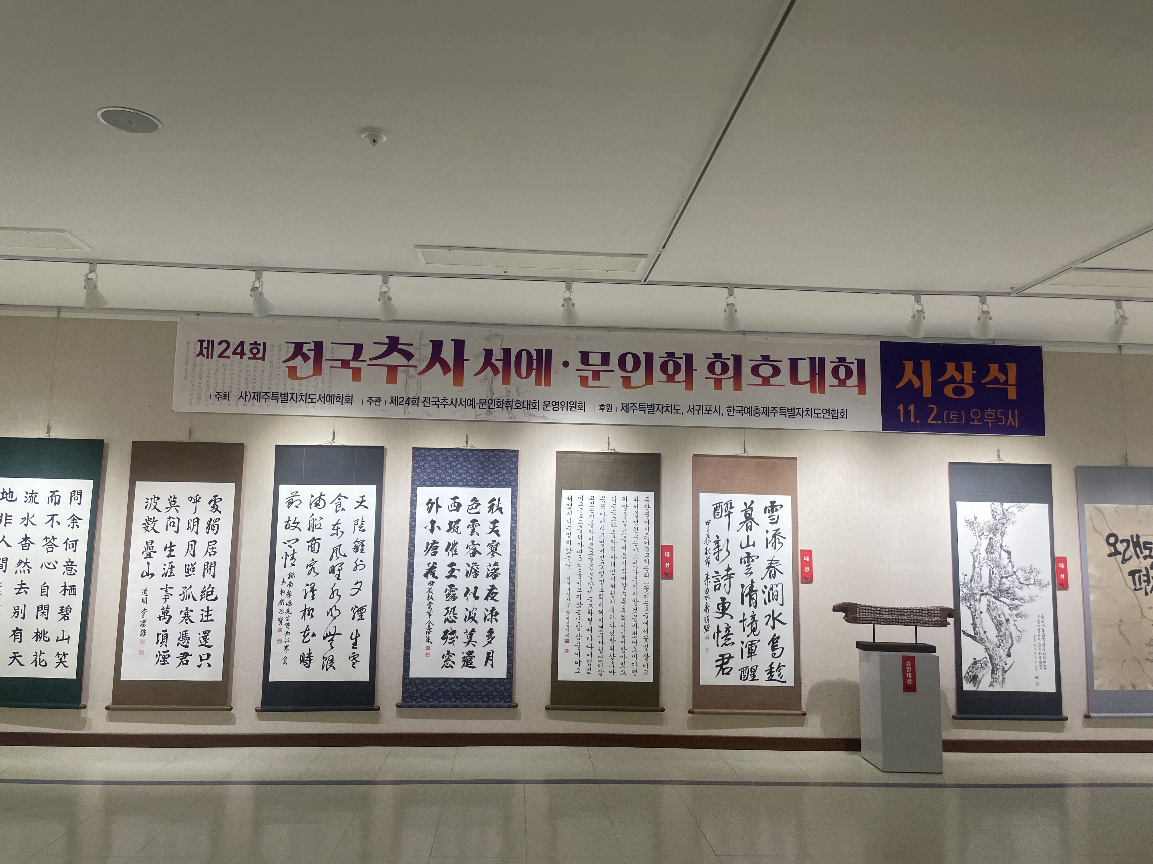 제24회 전국추사서예문인화휘호대회 시상식 및 전시 작성자제주서예학회|작성시간24.12.30|조회수78 목록 댓글 0 글자크기 작게가 글자크기 크게가 다음검색 현재 게시글 추가 기능 열기 북마크 공유하기 신고 센터로 신고 댓글 댓글 0 댓글쓰기 답글쓰기 댓글 리스트