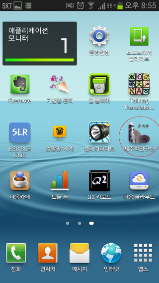 성공적으로 설정되면 다음과 같이 홈화면에 제주학연구소 카페앱이 등록됩니다.