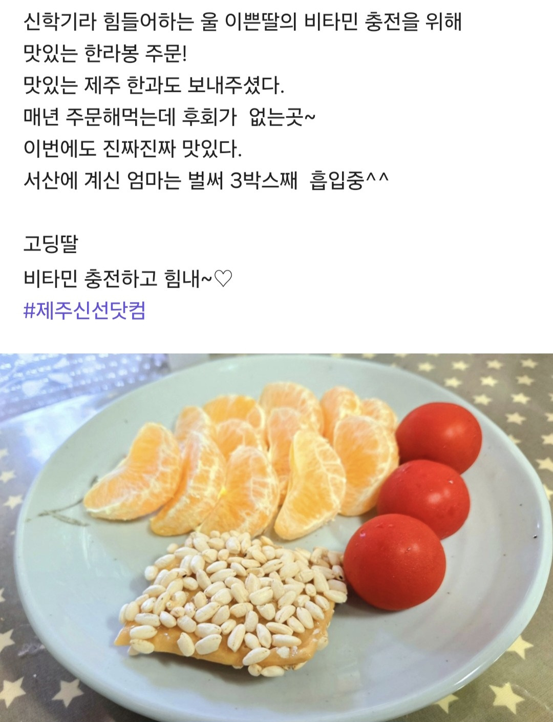후기좋은 하우스 한라봉 판매해요. 작성자제주신선닷컴|작성시간26.03.24|조회수13 목록 댓글 0 글자크기 작게가 글자크기 크게가 *주문전화 : 010-7459-3756*카톡아이디: naru3756*입금계좌 : 농협 901055-56-078539 안국현* 하우스 한라봉 * 다음검색 현재 게시글 추가 기능 열기 북마크 공유하기 신고 센터로 신고 댓글 댓글 0 댓글쓰기 답글쓰기 댓글 리스트