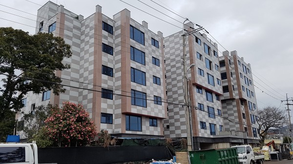 바람과 공기중에 염분이 많은 제주도는 주택의 외벽 마감재가 이상하게도 드라이비트가 많아요.