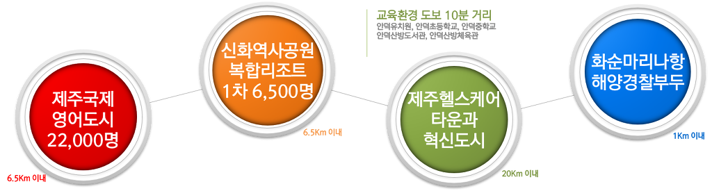 엘림피렌체는 제주영여교육도시와 신화역사공원이 약 6Km 거리에 있고