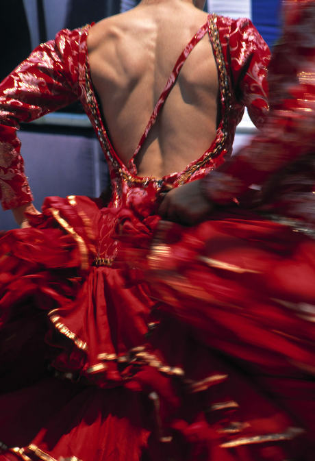 플라멩코가 투우와 함께 스페인을 대표하는 이미지로 자리 잡은 이유는 화려하면서도 진한 감성이 담겨 있는 춤 때문일 것이다. 하지만 기타와 노래, 팔마스 등이 없이 춤만으로는 전통적인 플라멩코로서의 생명력을 가질 수 없다. 남자는 주로 몸에 잘 맞는 조끼와 바지를, 여자는 화려한 색상에 주름이 많은 긴 치마를 입는데, 손과 발을 이용한 다양한 동작으로 표현한다.