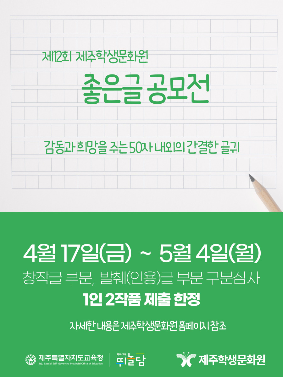 - 1인 2작품 이내, 감동과 희망을 주는 50자 내외