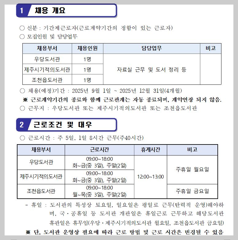이번에 나온 실제 제주지역 도서관 채용공고를 보여드릴게요😎