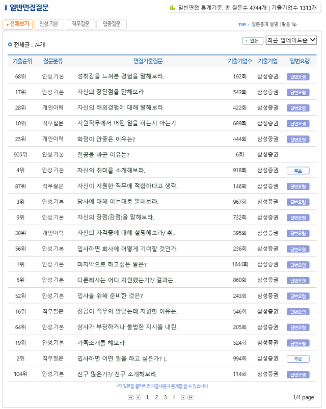 삼성증권 (삼증) 기출 면접질문과 후기·족보, 전형방식 등 실전 자료를 정리하고 통계화한 정보군요.