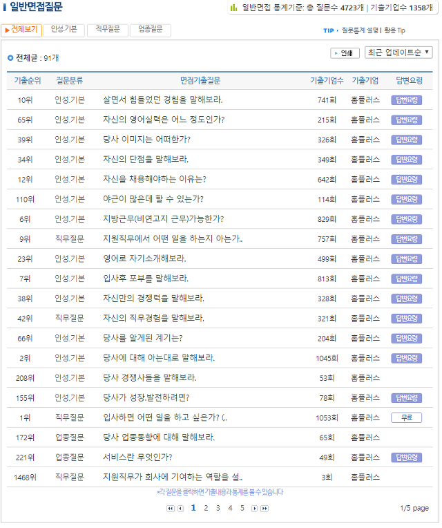 홈플러스 기출 면접질문과 후기·족보, 전형방식 등 실전 자료를 정리하고 통계화한 정보군요.