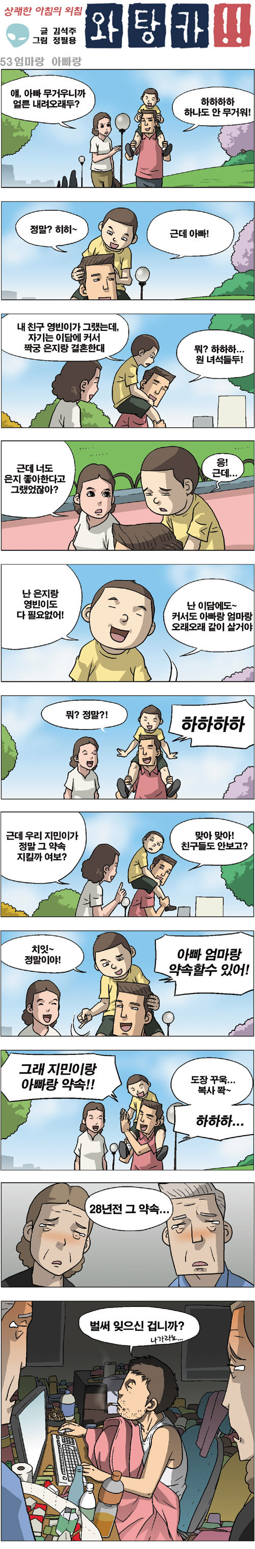 (만화) 와탕카!! - 엄마랑 아빠랑 작성자쩡이쩡(이은정)|작성시간13.04.29|조회수211 목록 댓글 1 글자크기 작게가 글자크기 크게가 ㅋㅋ 이런 아들은 노노~~^^ 다음검색 현재 게시글 추가 기능 열기 북마크 신고 센터로 신고 댓글 댓글 1 댓글쓰기 답글쓰기 댓글 리스트 작성자황적호(호떡) | 작성시간 13.05.25 가화마사상이라는 뜻 잘몼이해한결과/ 댓글 전체보기
