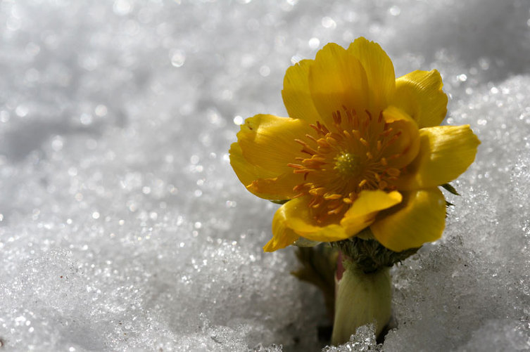 복수초는 꼿말이 동양이선 ‘영원한 행복’ 서양이선 ‘슬픈 추억’이렝 ᄒᆞ는디, 부제광 행복을 뜻ᄒᆞ는 꼿이렌덜토 ᄒᆞᆸ주. 한ᄌᆞ로는 복(福) 수(壽)가 부떤, 복도 하영 받곡 오래살렌ᄒᆞ는 뜻이 들언 이십주. 일른 봄 얼음ᄉᆞ이로 나완 피난 ‘얼음새꼿’, 구정으로 새해에 피염덴 원단화(元旦花), 눈 소곱에 연꼿추룩 핀덴ᄒᆞ멍 설연(雪蓮)이엔도 ᄀᆞᆯ읍데다.