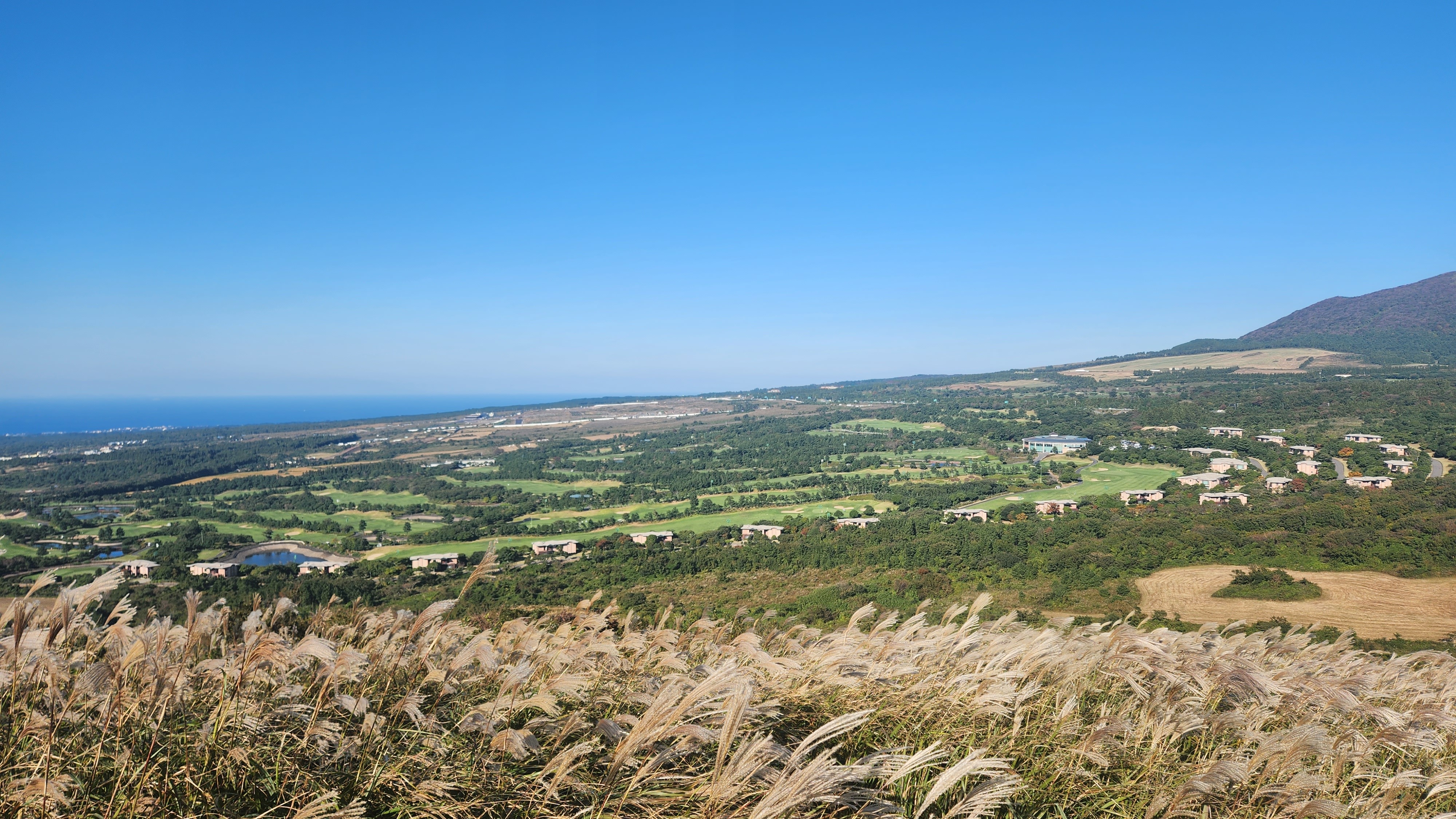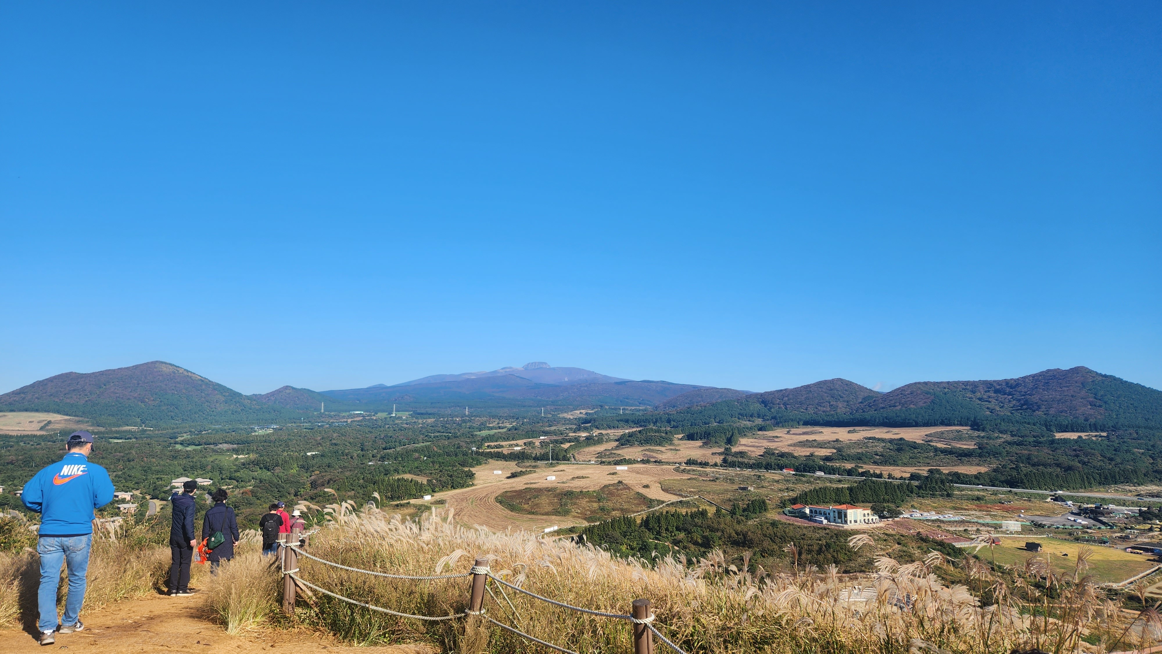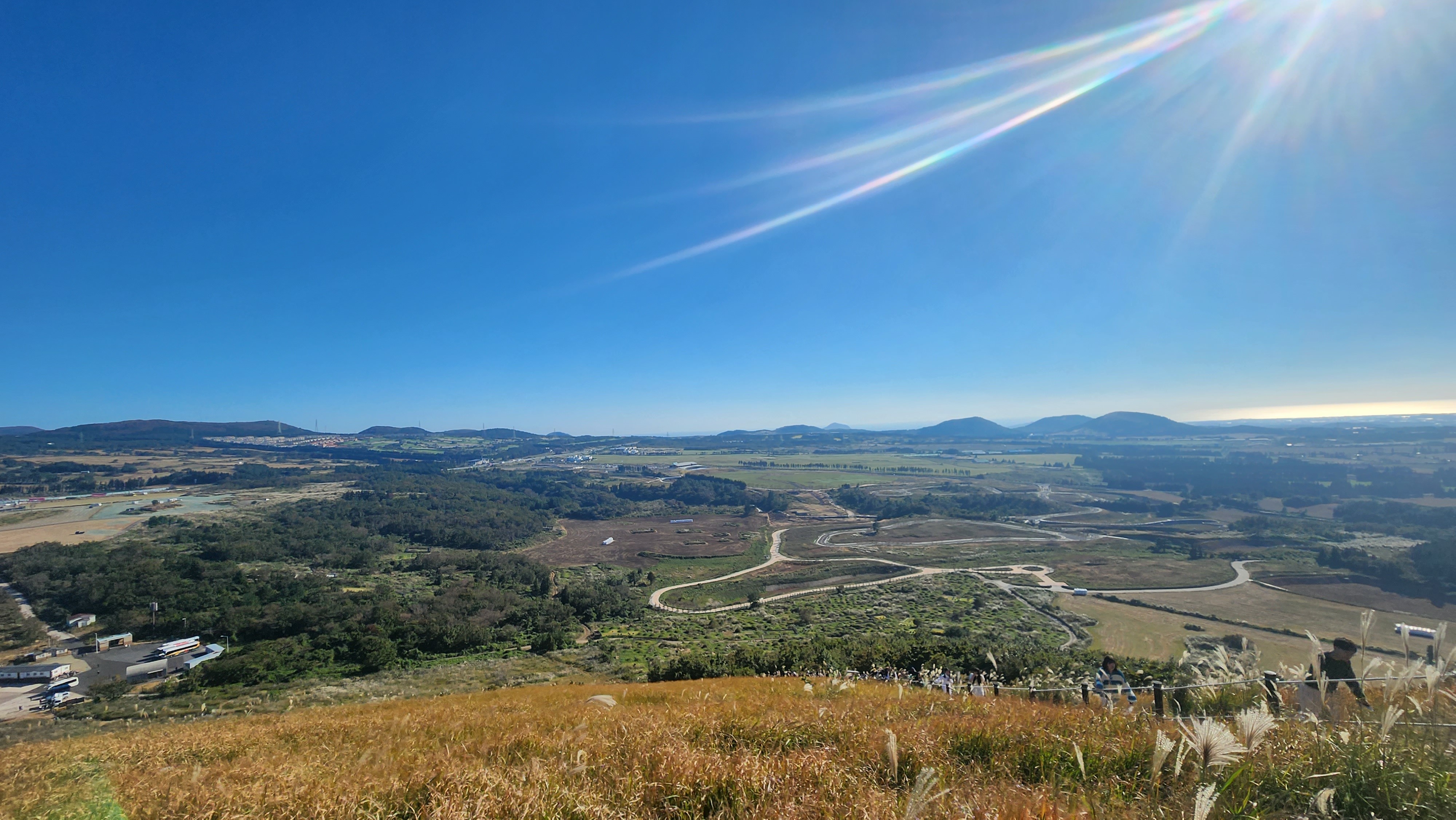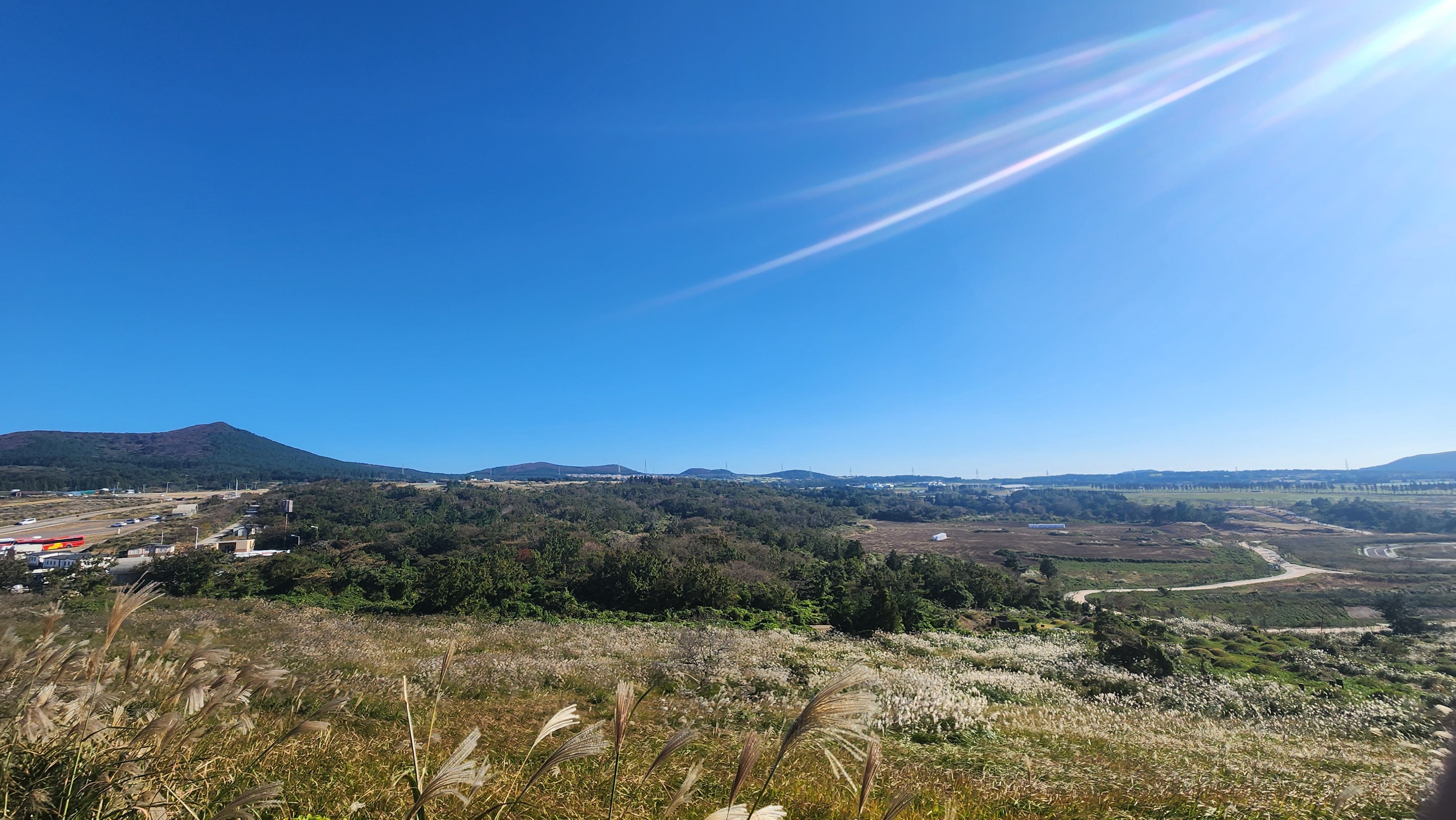 저 멀리 이름모를 오름들과 끝없이 펼쳐진 억새풀을 보니 사진을 찍어야 겠다 싶더라구요!