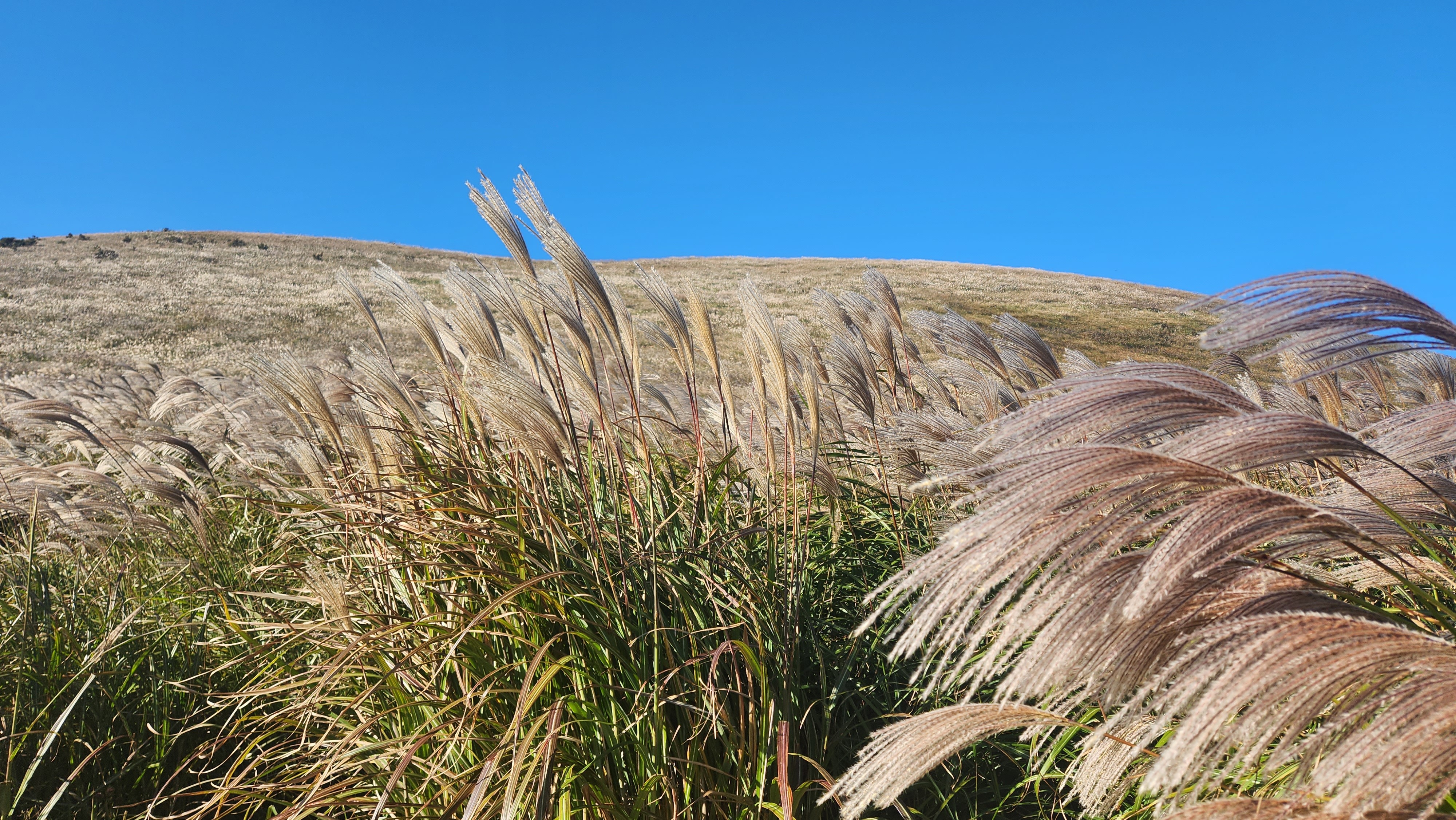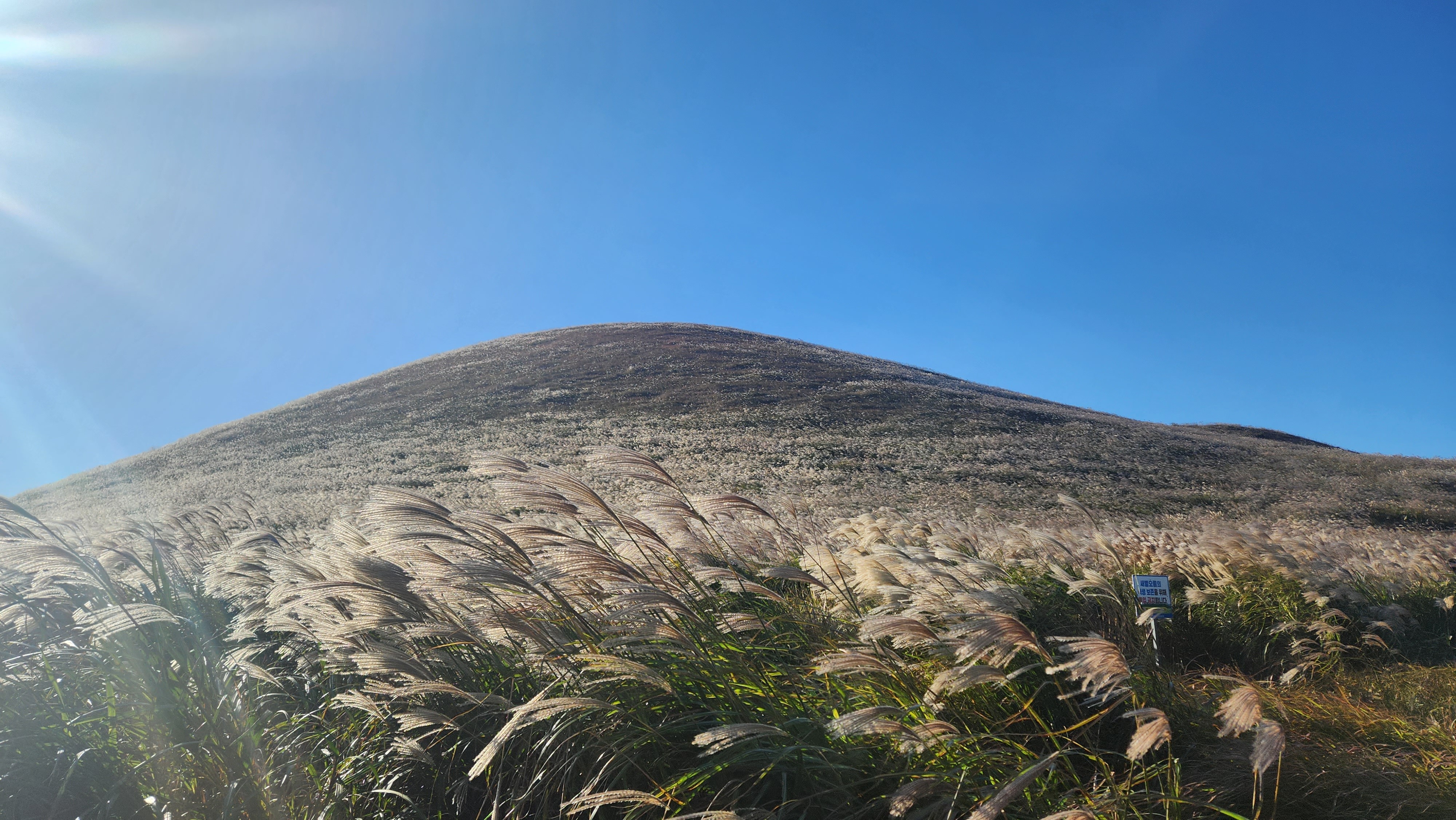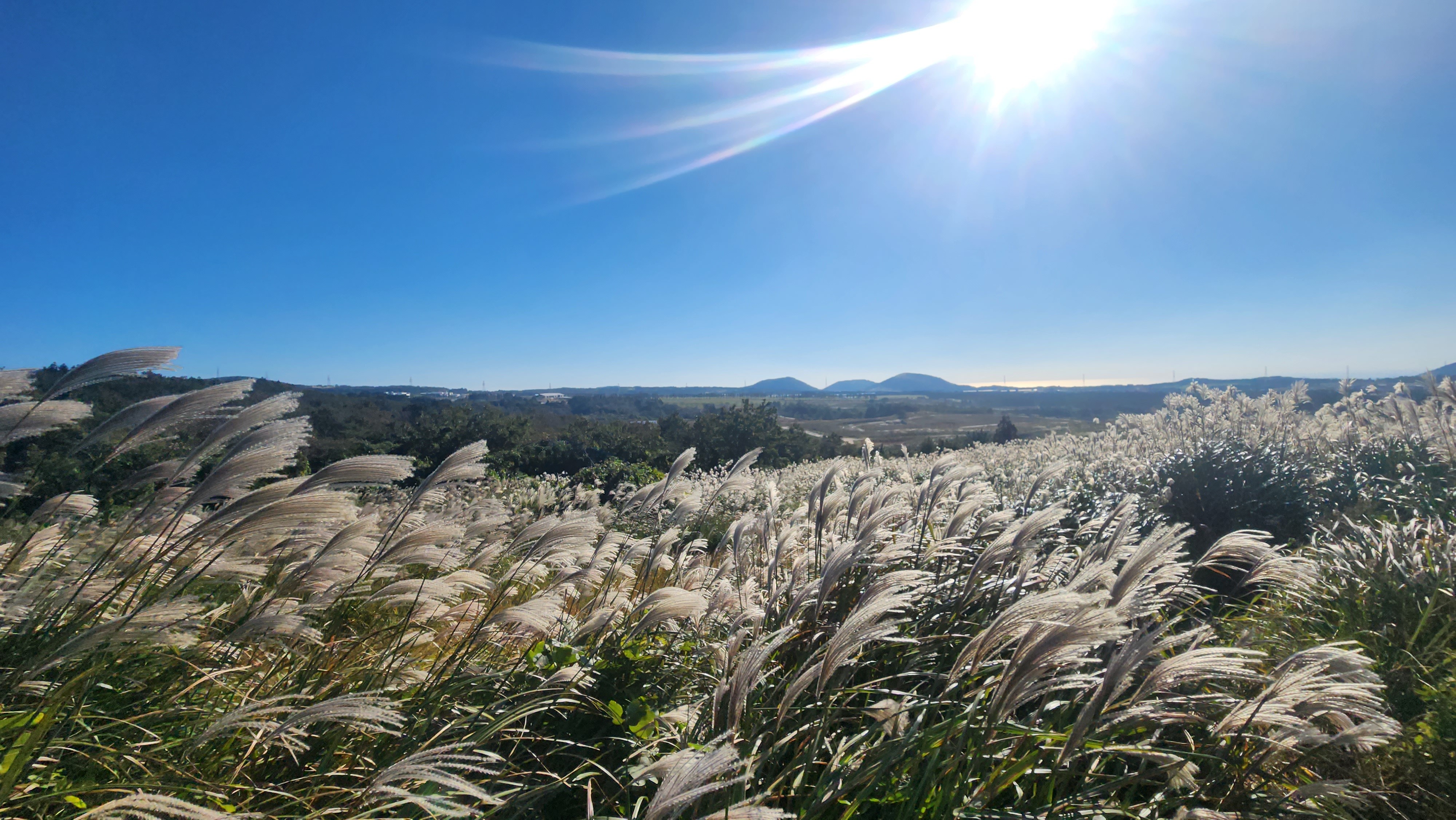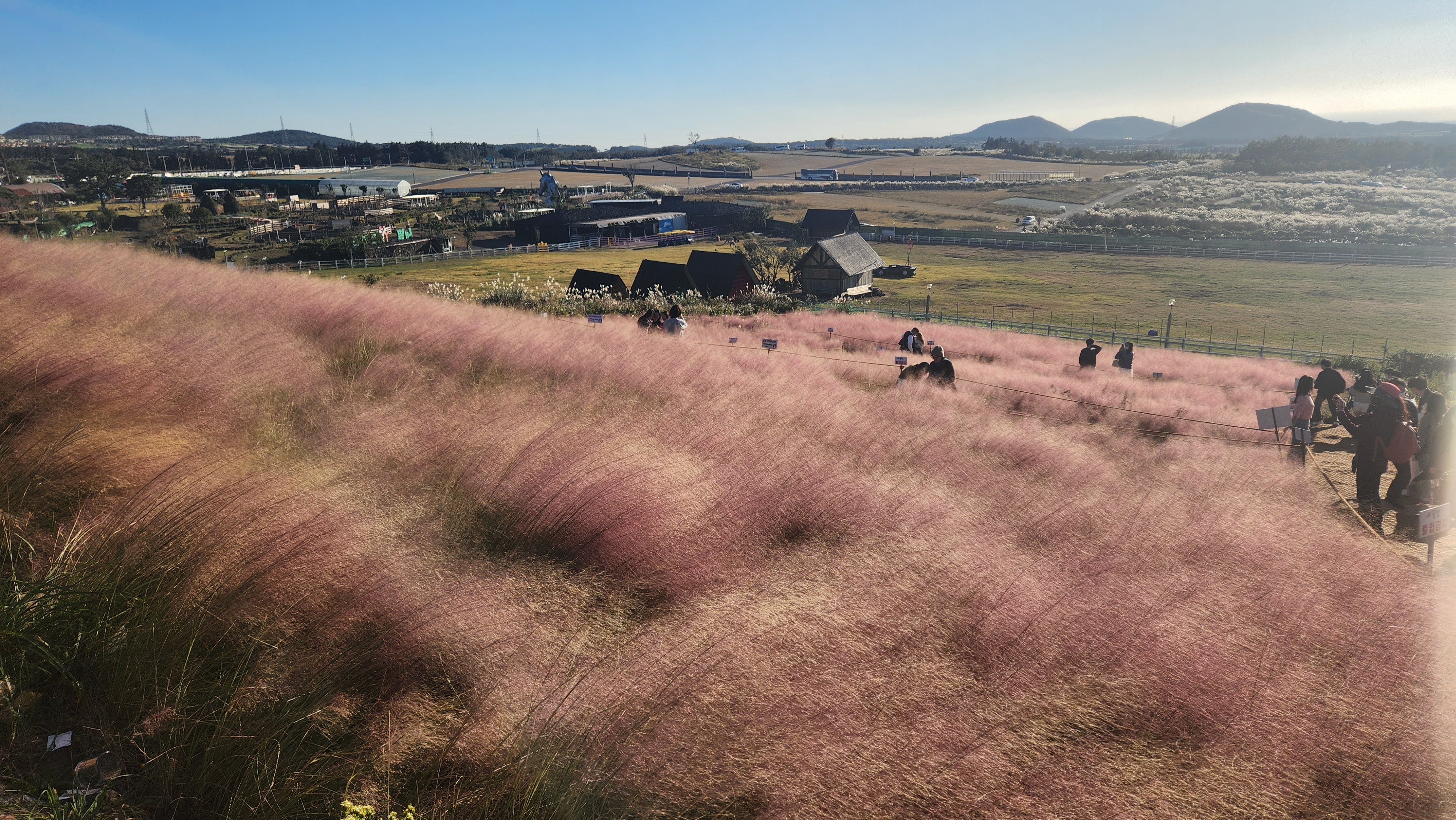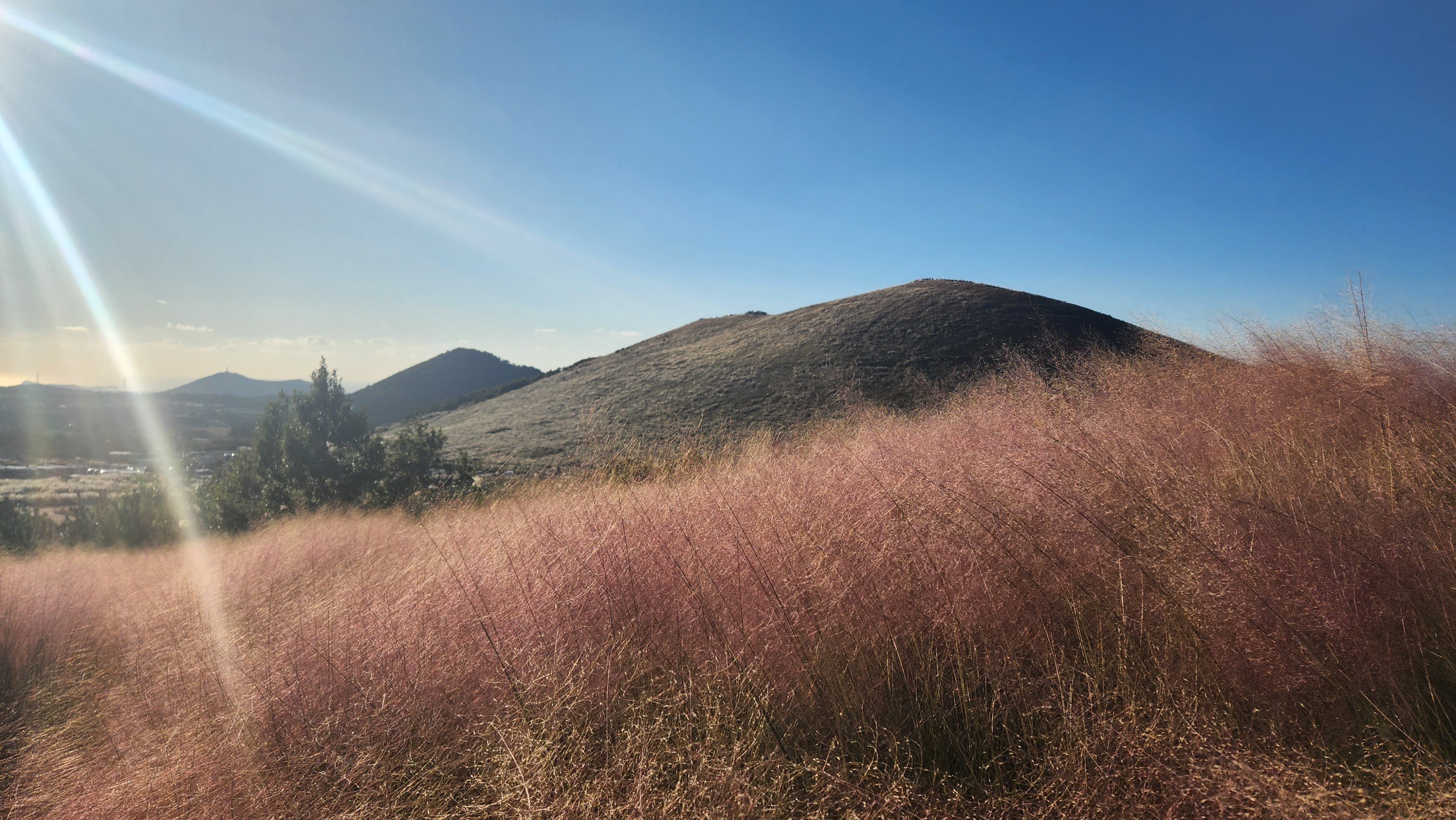 저 멀리 이름모를 오름들과 끝없이 펼쳐진 억새풀을 보니 사진을 찍어야 겠다 싶더라구요!