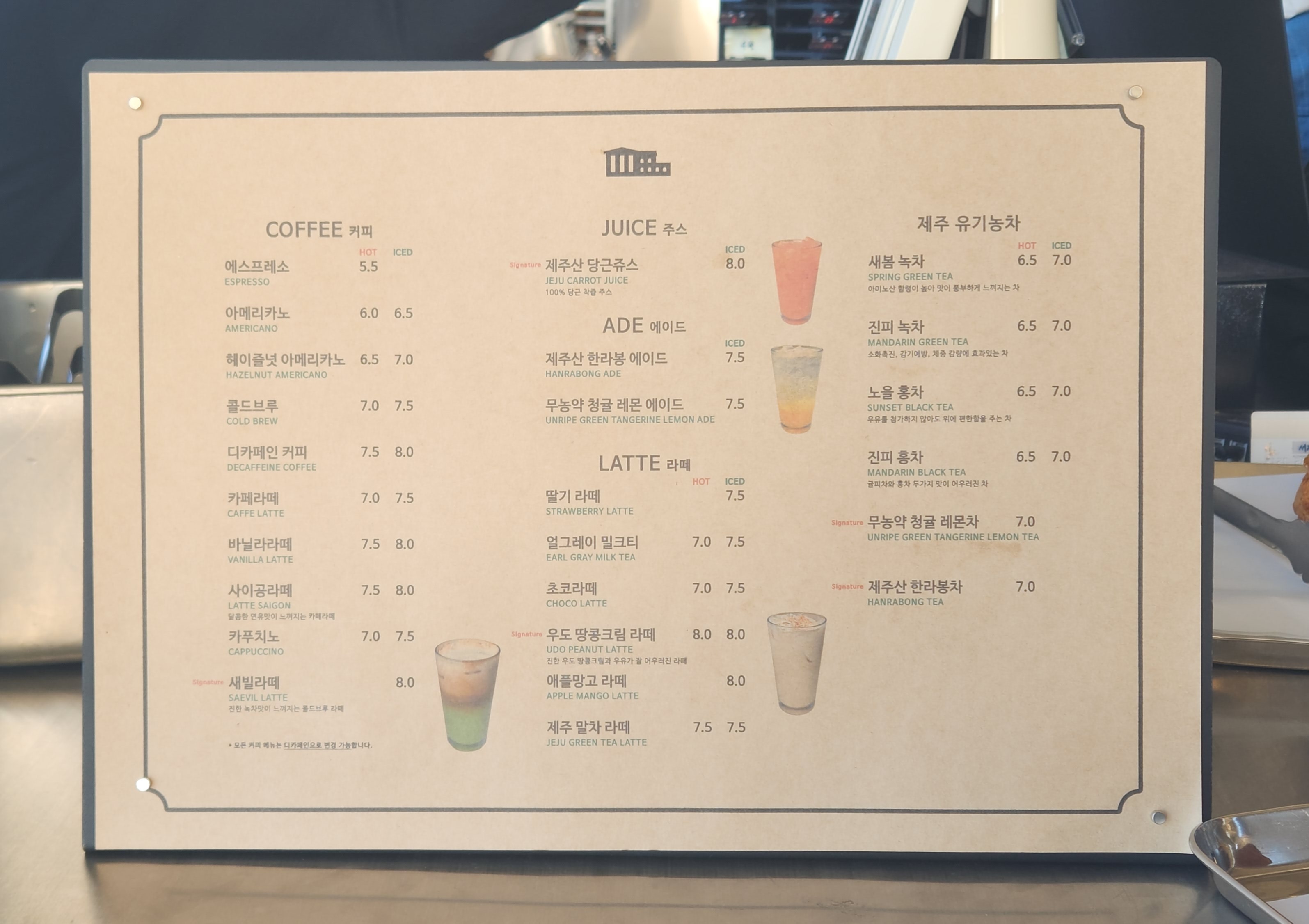 새빌라떼와 당근쥬스가 소진되었다고 하네요 ㅠ