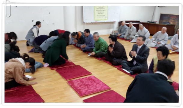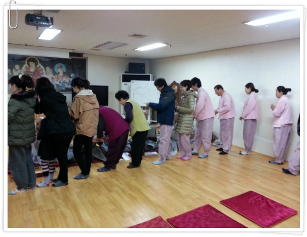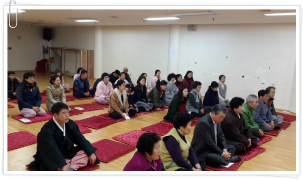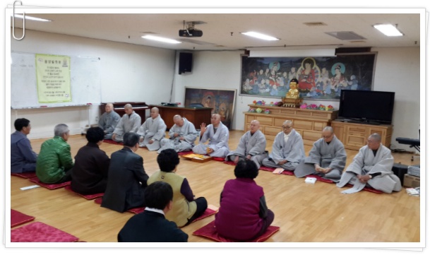 유마실에서 대중들과 약천사 신도분들 그리고 템플참가자들이 모여서