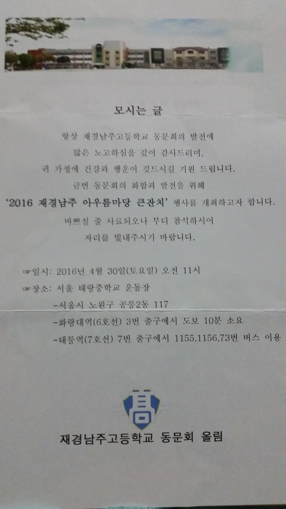 ‘2016 재경남주 아우름마당 큰잔치’ 행사를 개최하고자 합니다.