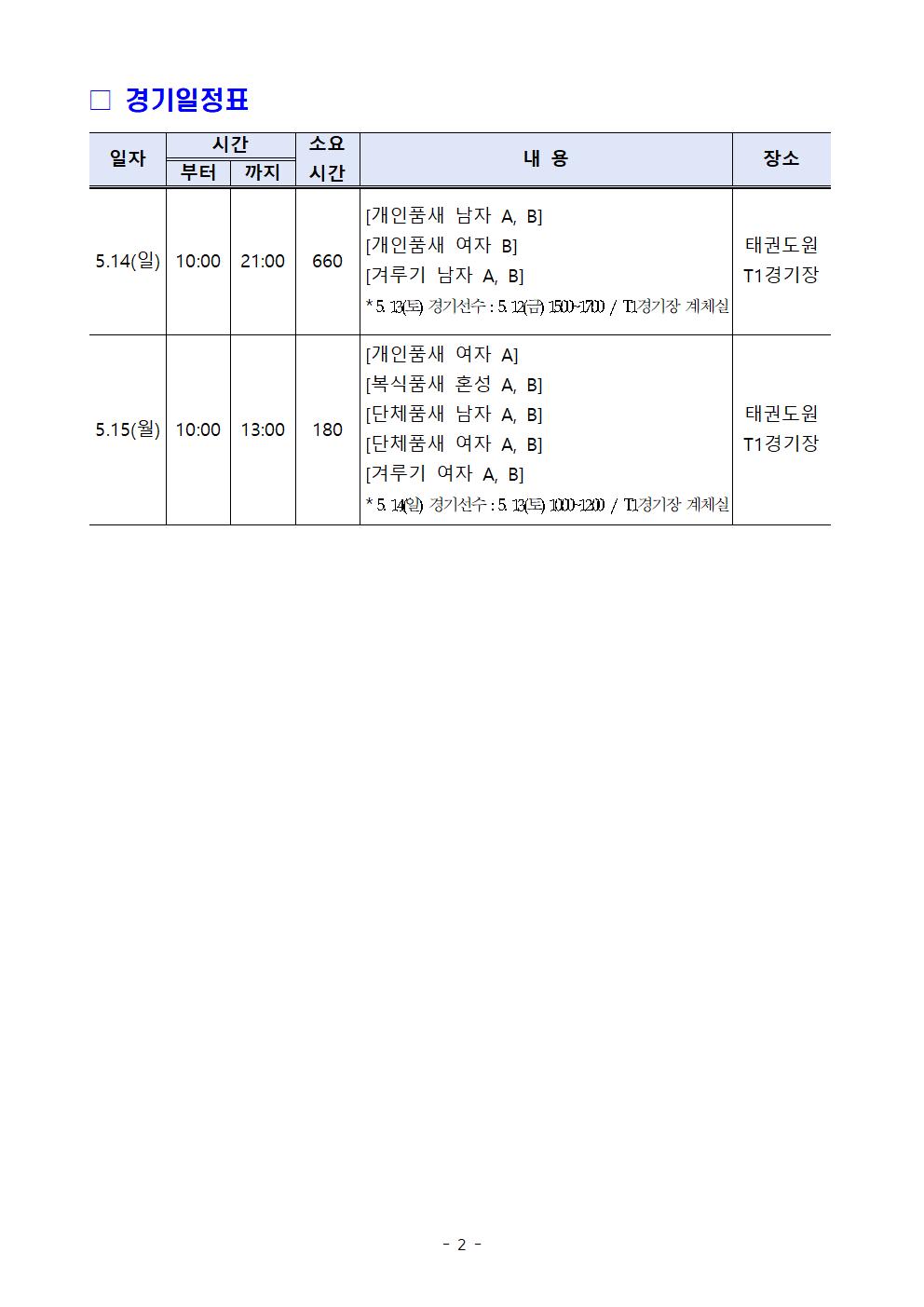 2023년 전북아시아태평양마스터스대회 경기일정안내 작성자전북태권도협회|작성시간23.04.05|조회수437 목록 댓글 0 글자크기 작게가 글자크기 크게가 취소 및 교체선수가있으실 경우에는 첨부파일에 작성하셔서 오늘까지 본협회 메일(jbtk5202@hanmail.net)로 신청해주시기 바랍니다. 다음검색 현재 게시글 추가 기능 열기 북마크 신고 센터로 신고 댓글 댓글 0 댓글쓰기 답글쓰기 댓글 리스트