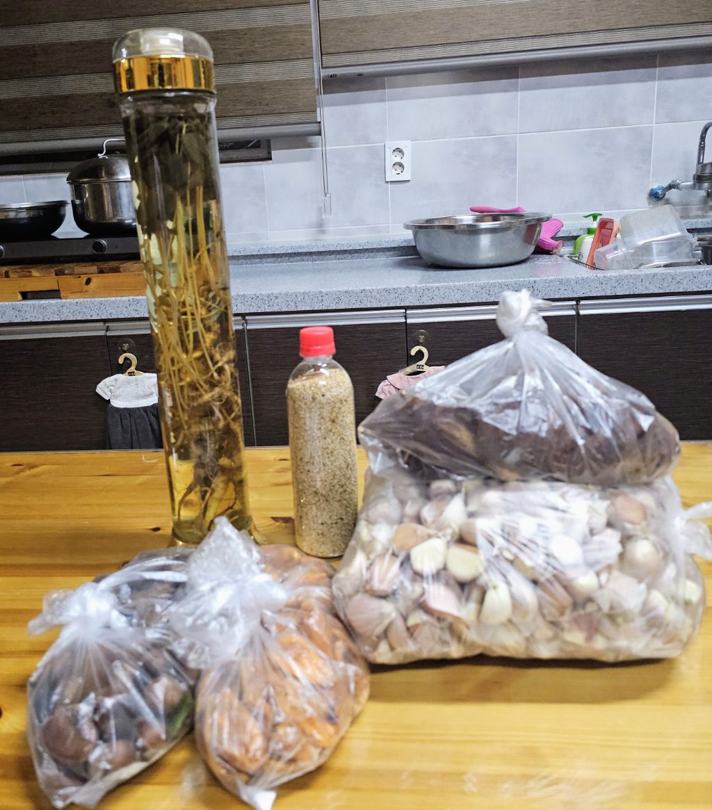 도라지 담금주(20년),마늘,참깨,곳감,구은밤,감마랭이...
