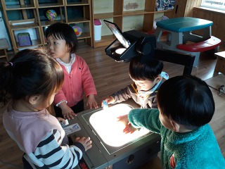 벽에 나타나는 그림자는 신기하고 재미있지요.. 아이들은 여러 놀잇감을 올려보며