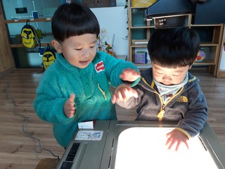 아이들은 빛과 그림자의 만남을 경험 해 봅니다. 검은 그림자만 있는 줄 알았는데