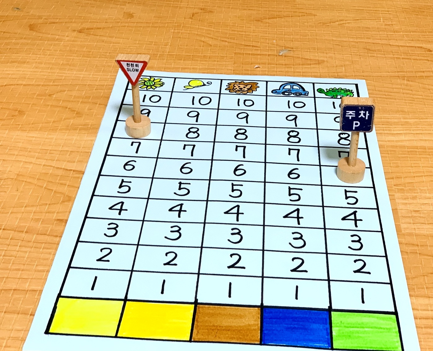 박결: 게임판에 동물이랑 색깔이랑 숫자가 있네요.