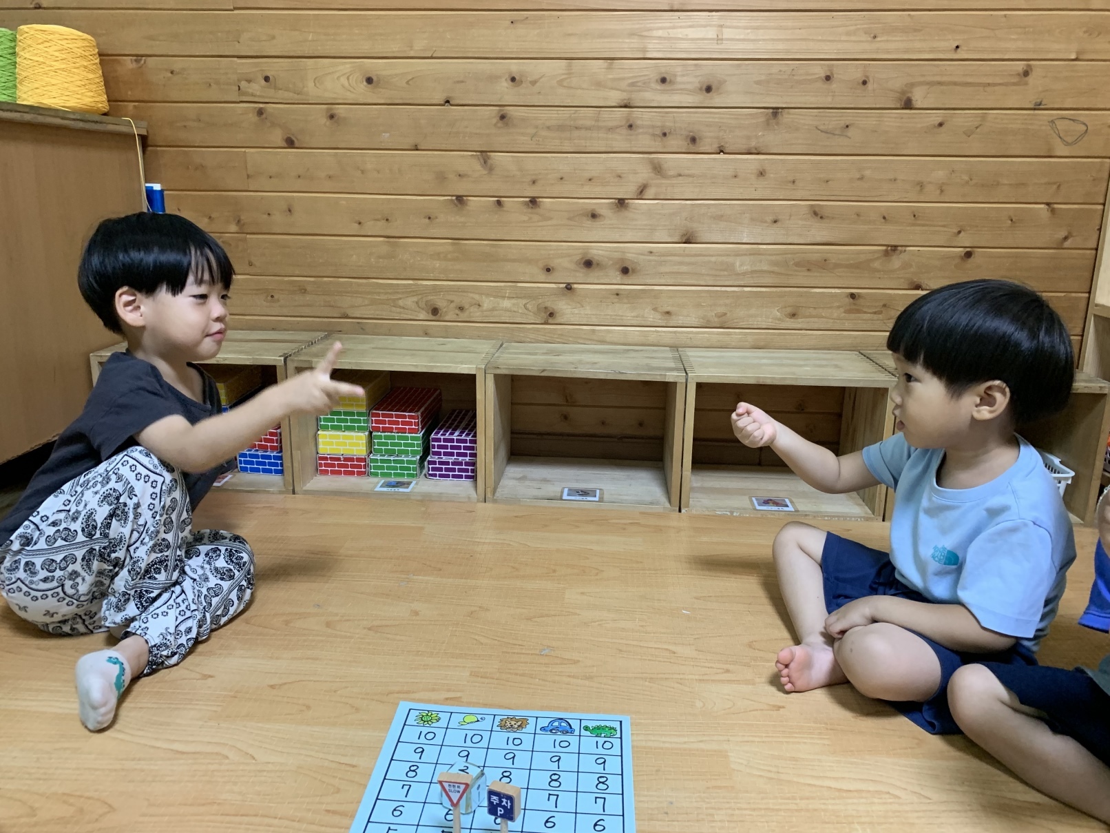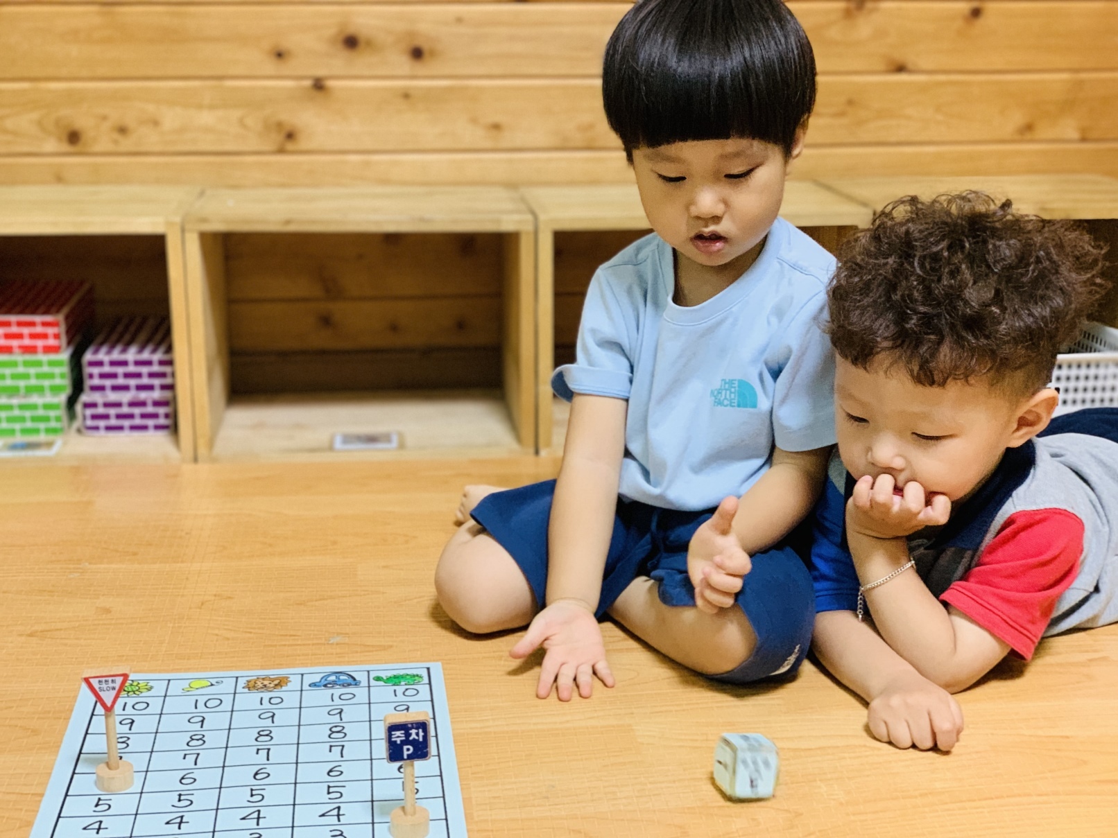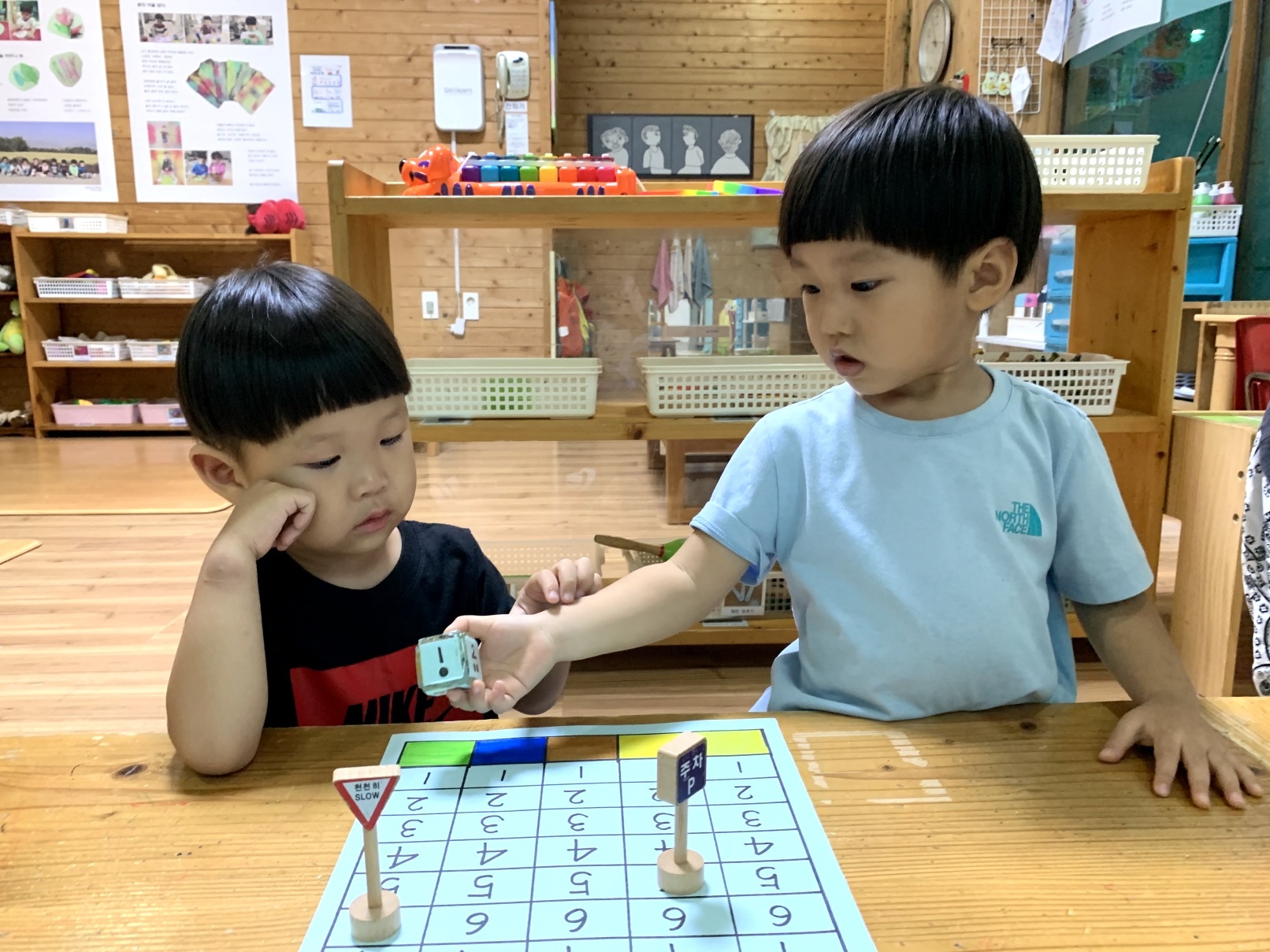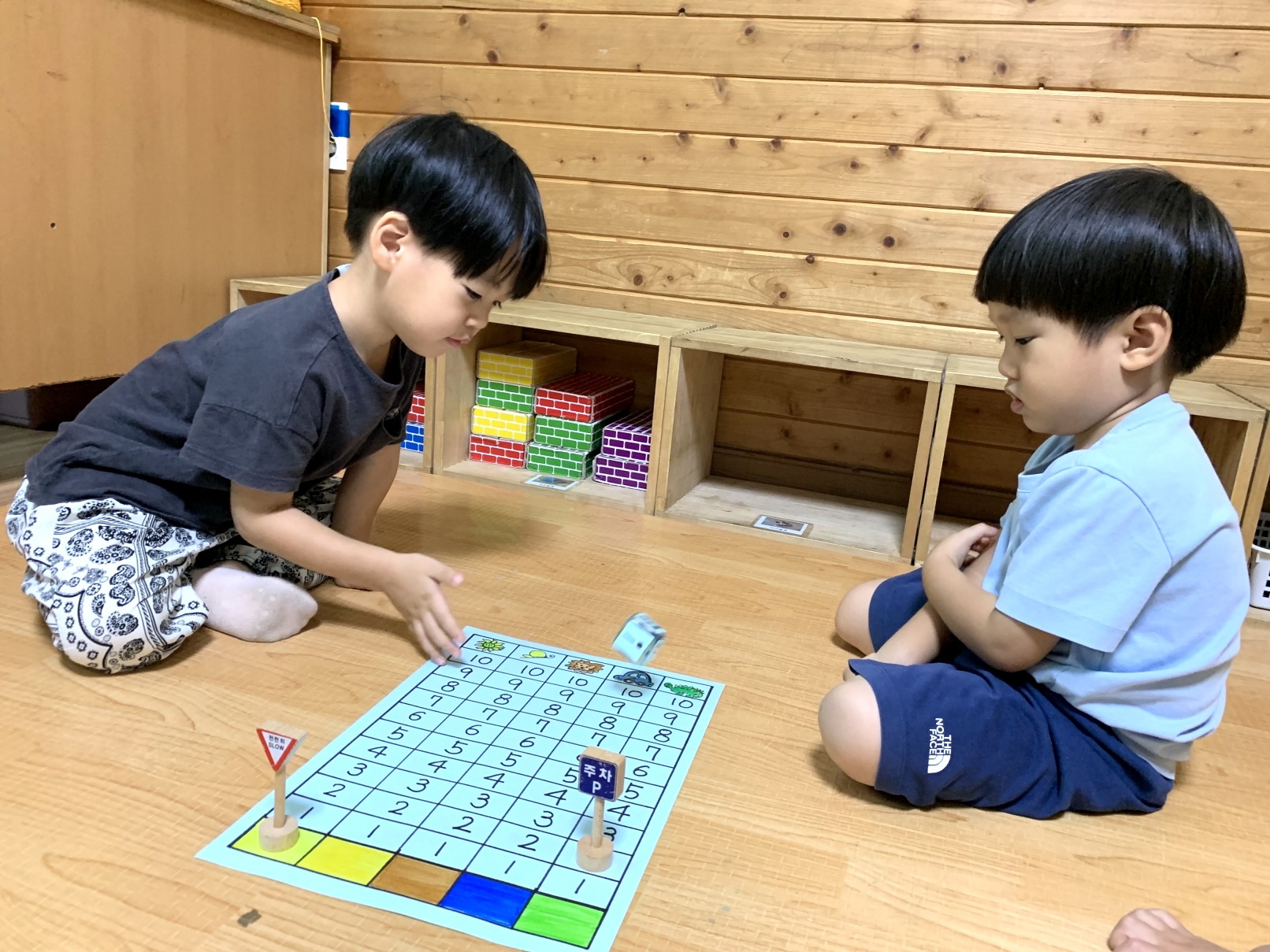 처음에는 서로 주사위 던지기만 하려고 하던 아이들이 점차 주사위 주고받기를 실행합니다.