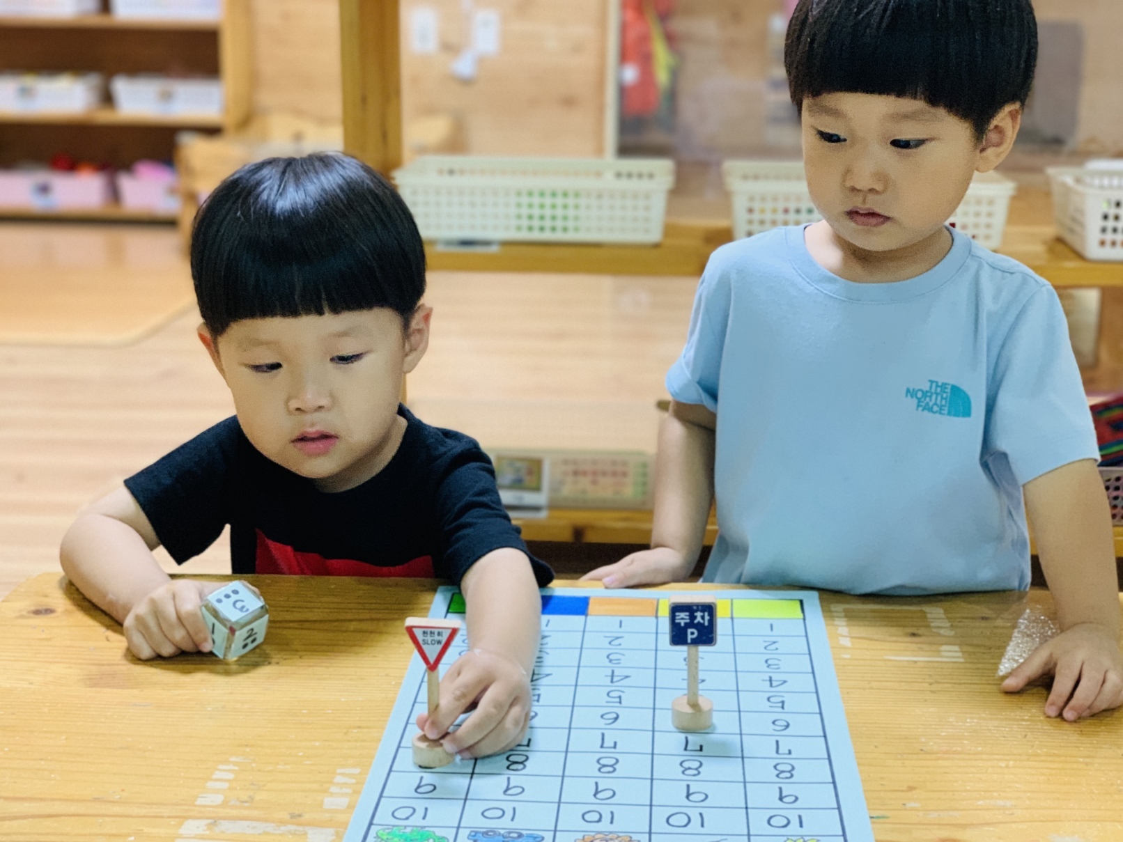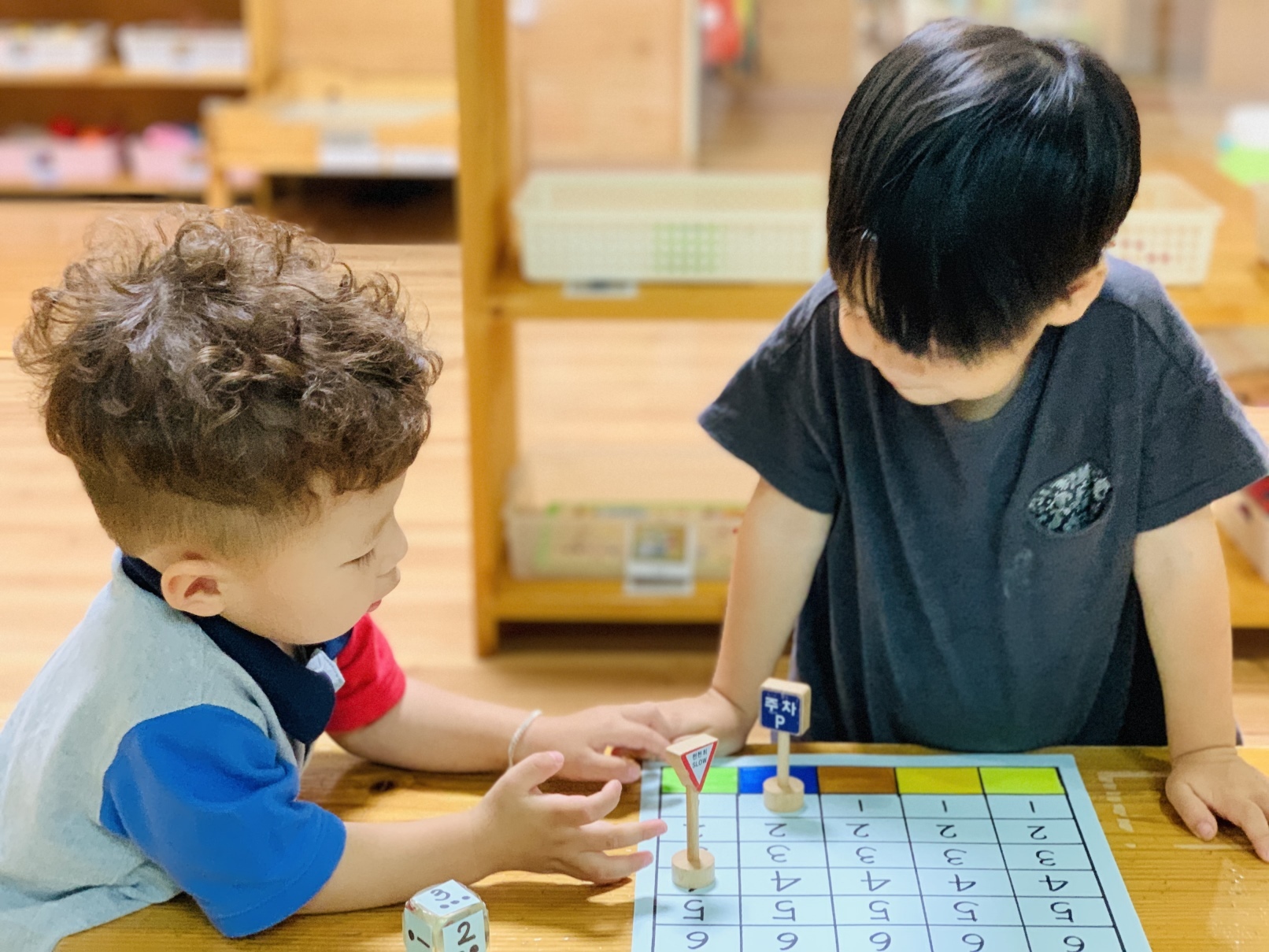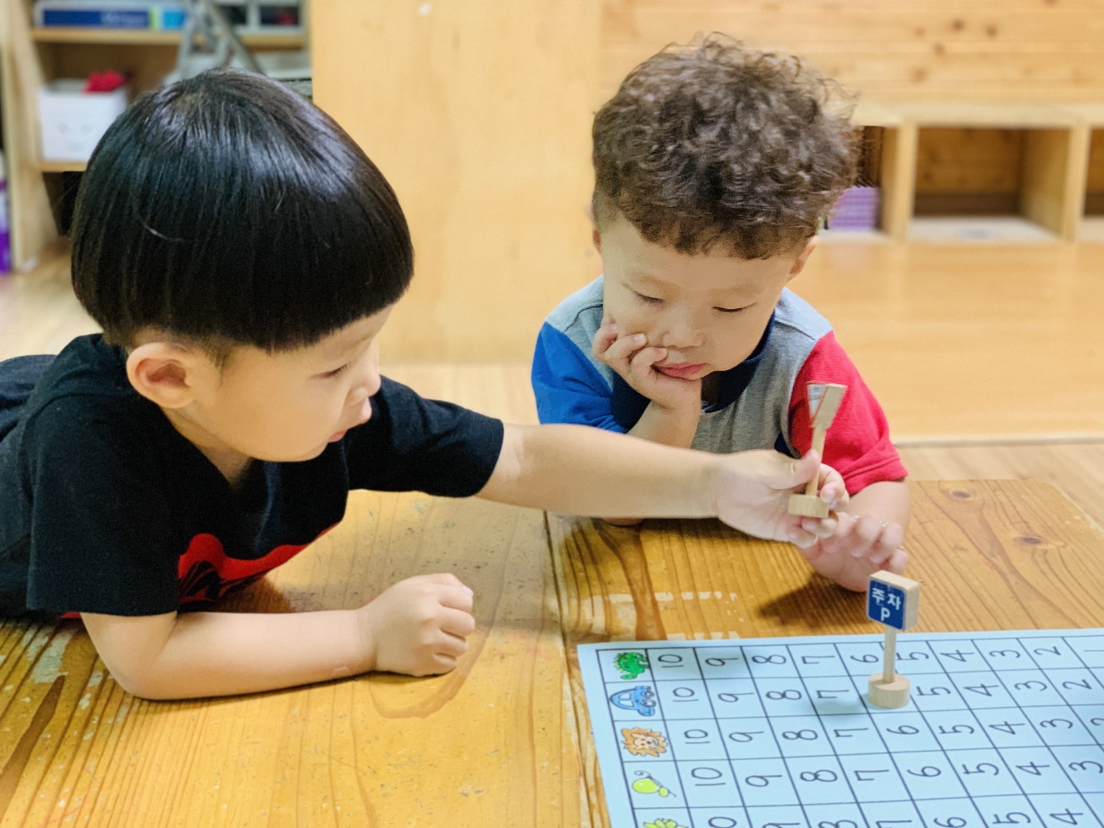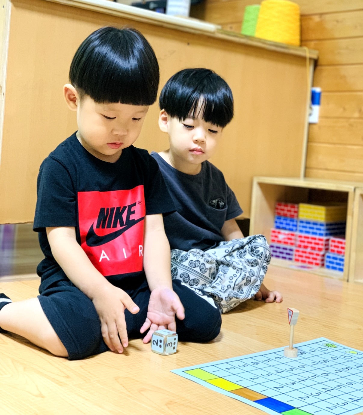 처음에는 서로 주사위 던지기만 하려고 하던 아이들이 점차 주사위 주고받기를 실행합니다.