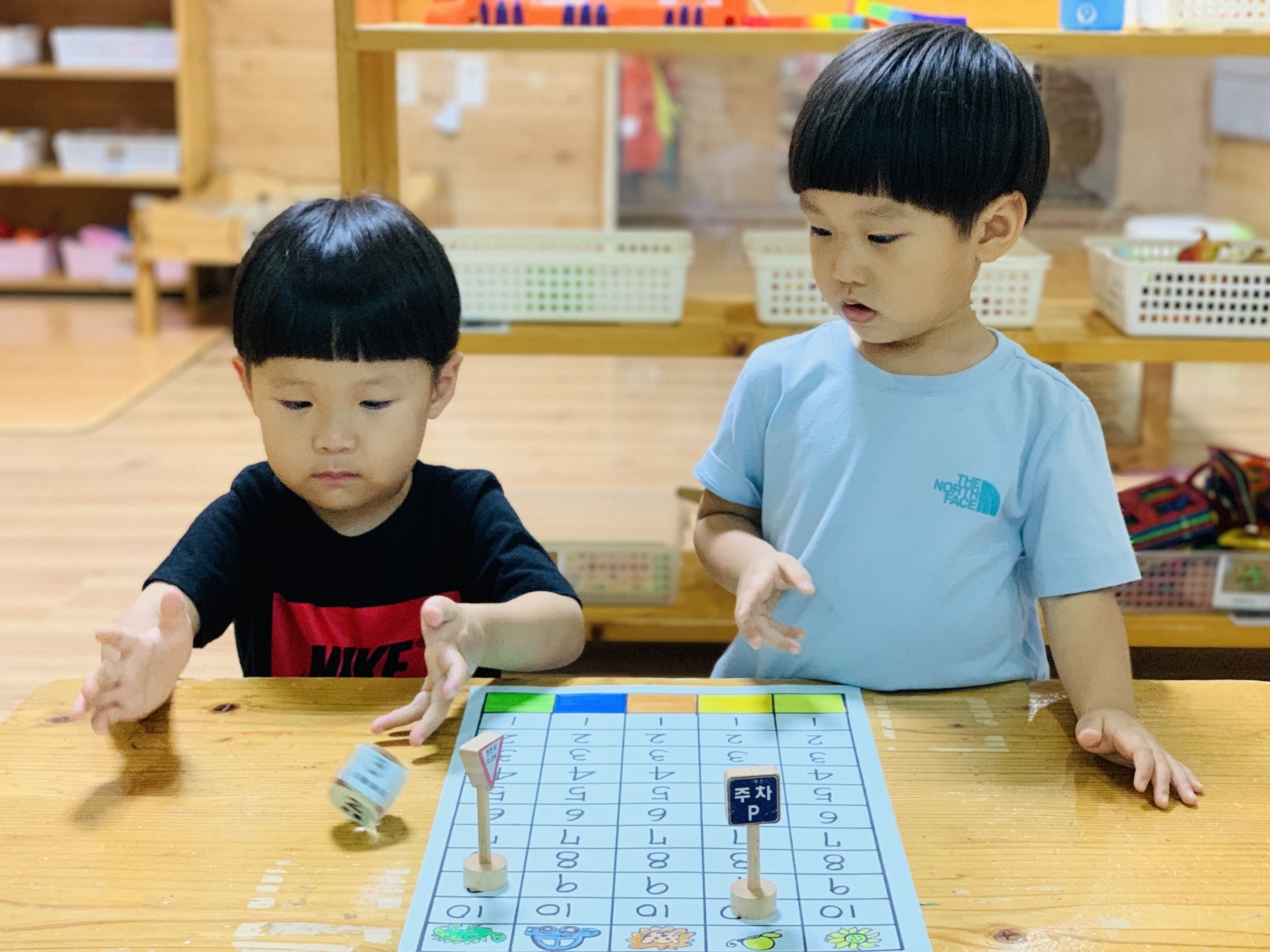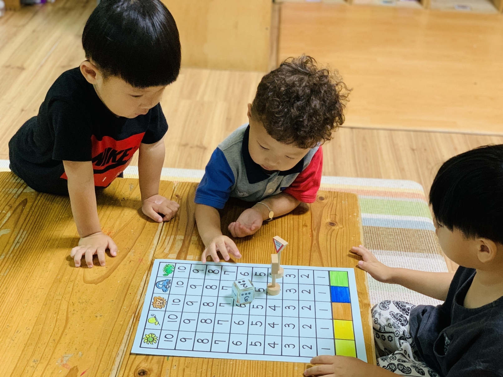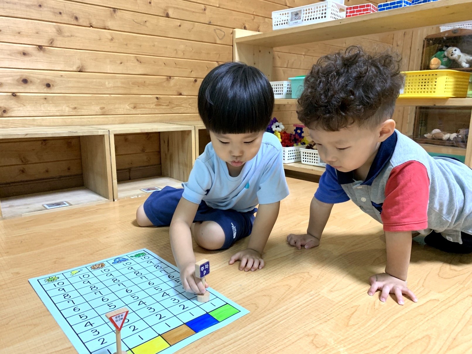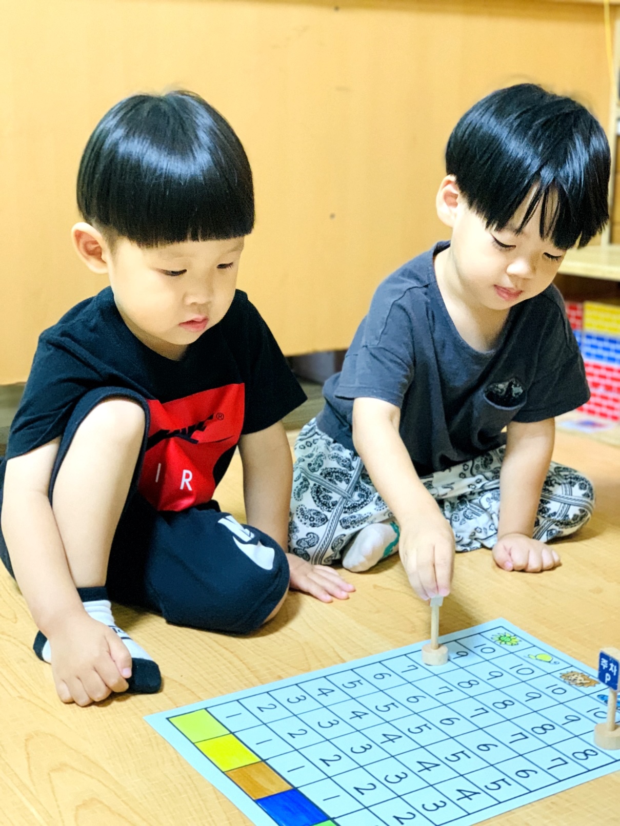 처음에는 서로 주사위 던지기만 하려고 하던 아이들이 점차 주사위 주고받기를 실행합니다.