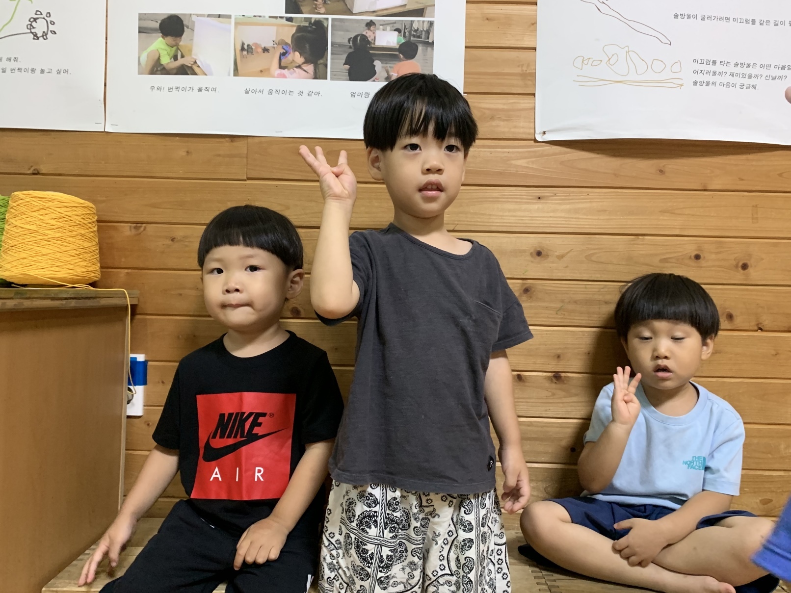 아이들은 알고 있는 숫자들을 이야기하고 손가락으로 나이를 알려주기도 합니다.