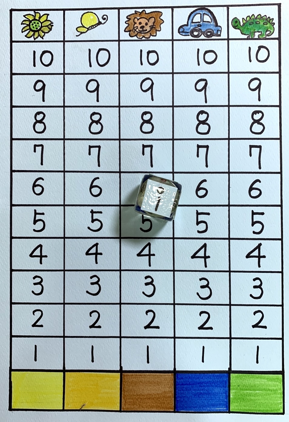 게임판에는 1~10까지 있고, 주사위는 1~3까지 있어.