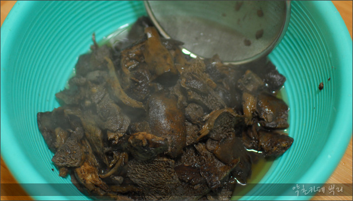 .능이버섯을 손질한 후 반나절 이상 물에 담가 벌레들과 이물질을 제거해줍니다.