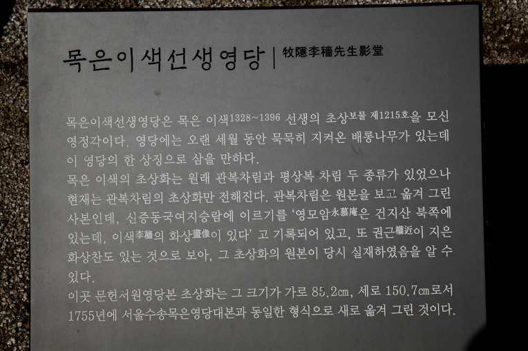 목은 이색(牧隱 李穡, 1328~1396)은 고려말의 문신·학자. 본관은 한산(韓山). 자는 영숙(穎叔), 호는 목은(牧隱). 삼은(三隱)의 한 사람이다. 찬성사 곡(穀)의 아들로 이제현(李齊賢)의 문인이다. 1341년(충혜왕 복위 2)에 진사가 되고, 1348년(충목왕 4)원나라에 가서 국자감의 생원이 되어 성리학을 연구하였다. 1351년(충정왕 3)아버지의 상을 당하여 귀국하여 1352년(공민왕 1) 전제(田制)의 개혁, 국방계획, 교육의 진흥, 불교의 억제 등 당면한 여러 정책의 시정개혁에 관한 건의문을 올렸다. 그의 문하에서 권근(權近), 김종직(金宗直), 변계량(卞季良) 등을 배출하여 조선성리학의 주류를 이루게 하였다.