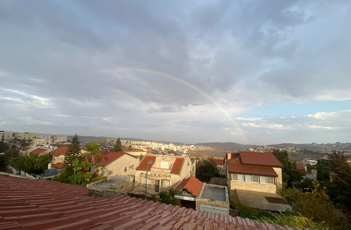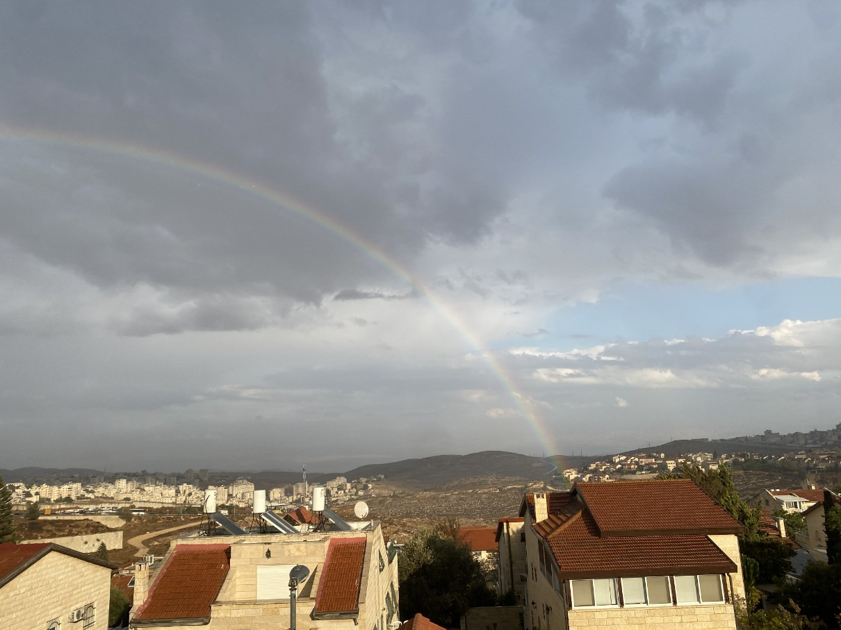 오늘 예루살렘에는 이른비가 내렸습니다. 비가 그치고 난 후 동쪽 하늘에 커다란 무지개가 하늘에 펼쳐져 있는 아름다운 현상을 보았습니다. 예루살렘에서 무지개는 언제나 반갑습니다~!