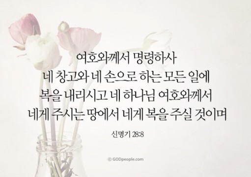 주께서 명하셔서, 너희의 창고와 너희의 손으로 하는 모든 일에 복이 넘치게 하실 것이다. 그리하여 주 너희의 하나님이 너희에게 주시는 땅에서 너희에게 복을 주실 것이다.